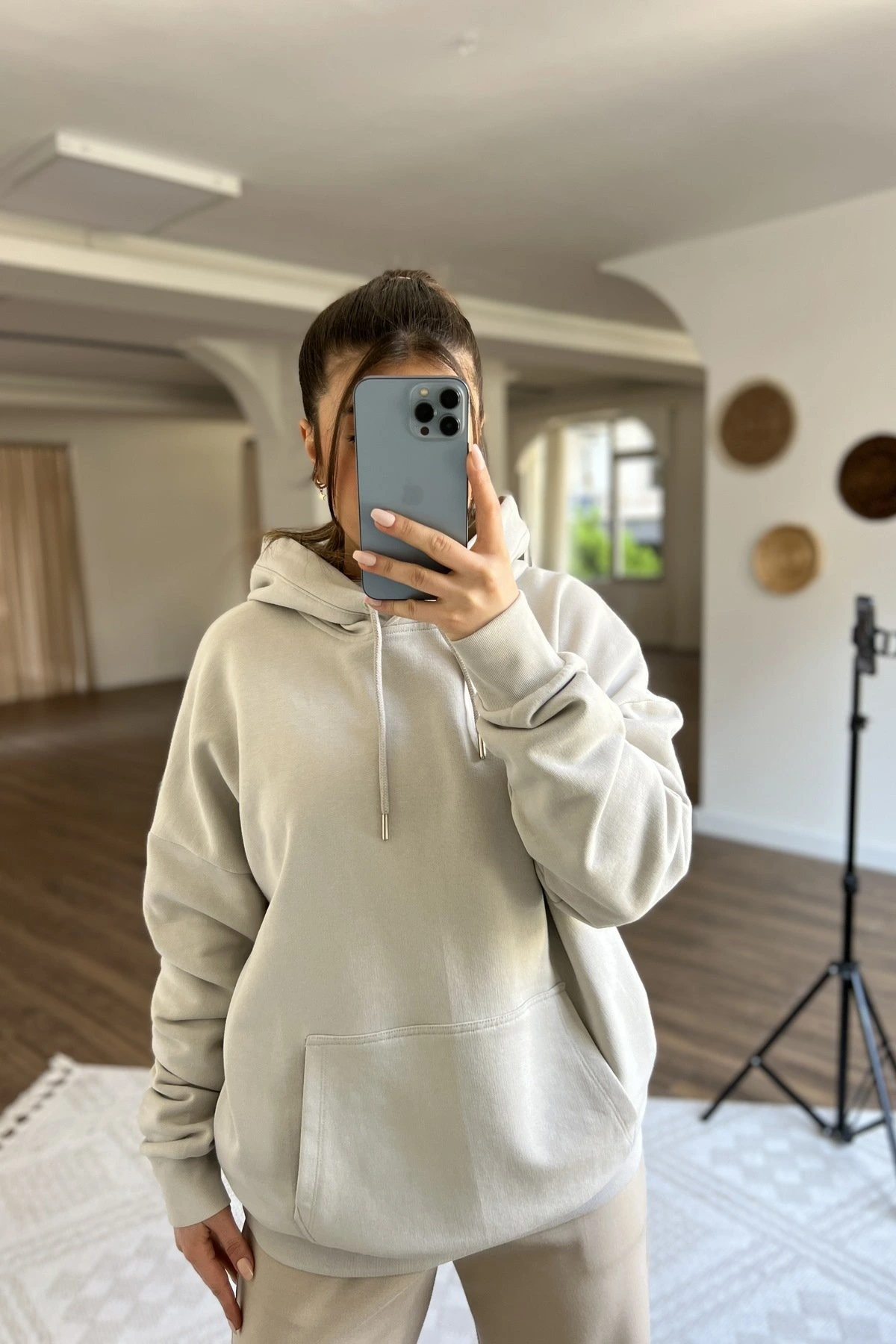 KANGRU CEP KAPÜŞONLU SALAŞ PAMUK SWEAT – EKRU