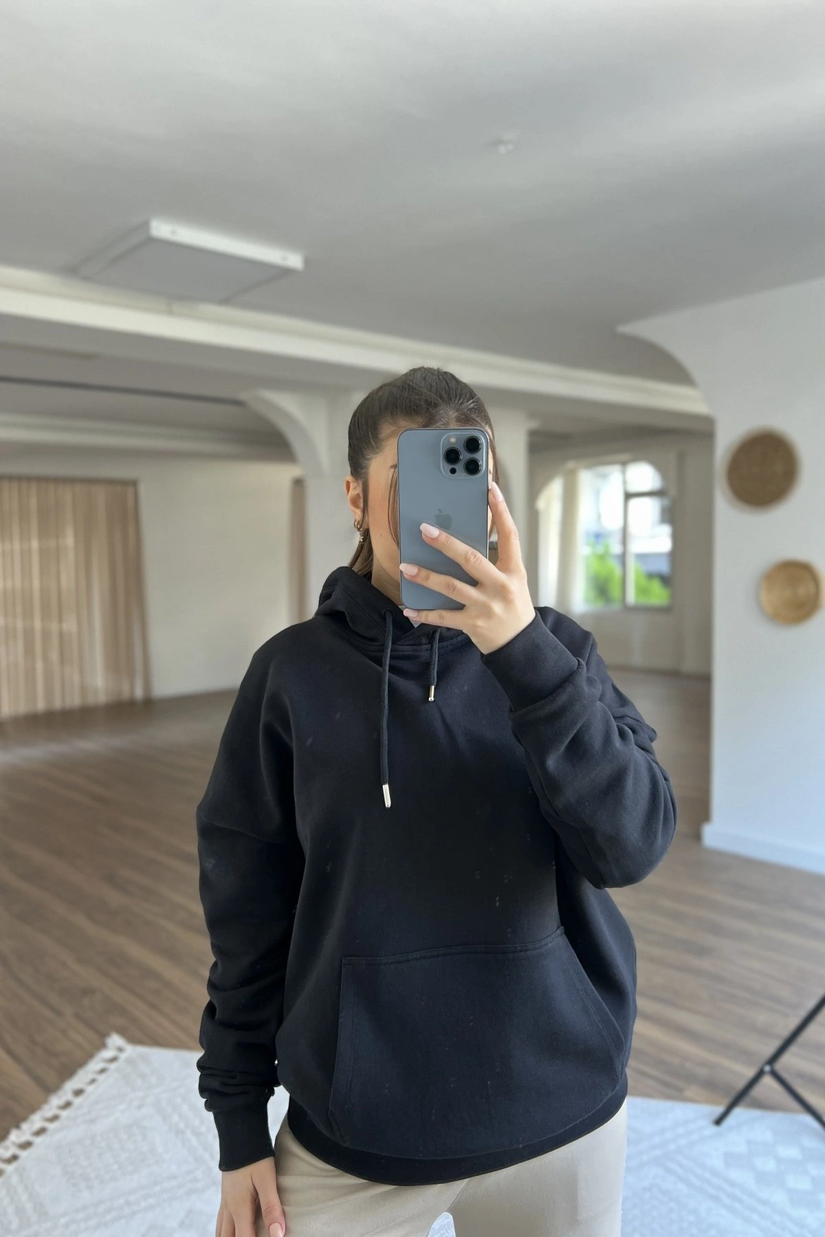 KANGRU CEP KAPÜŞONLU SALAŞ PAMUK SWEAT – SİYAH
