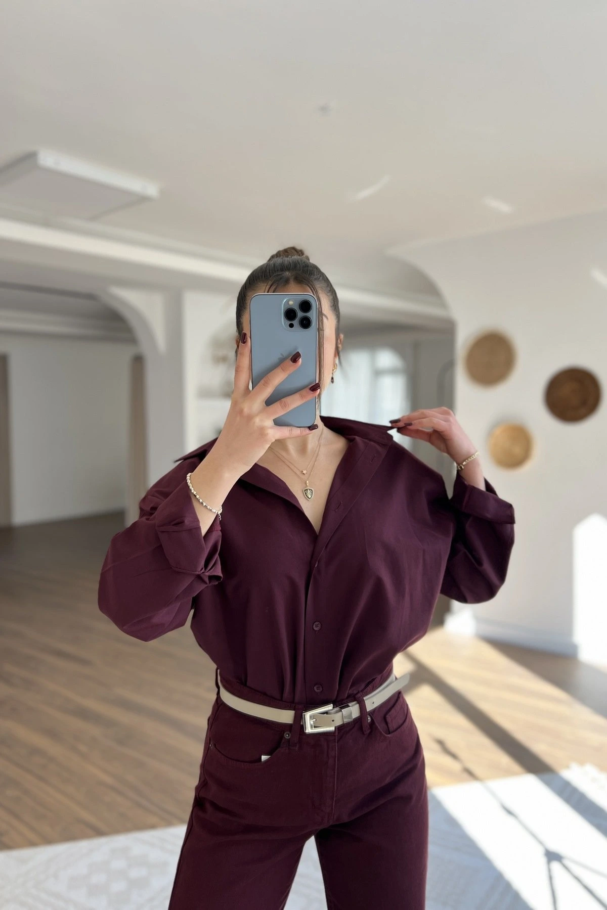 OMUZ VATKA PAMUK SALAŞ GÖMLEK – BORDO