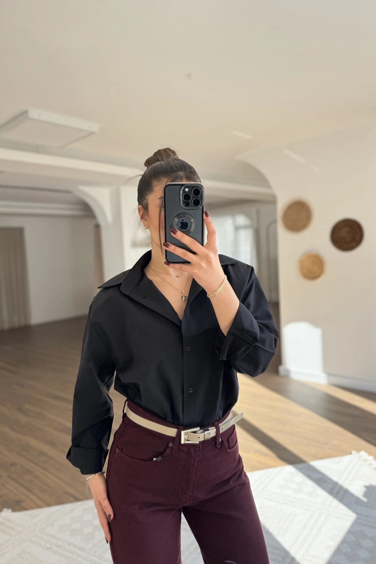 OMUZ VATKA PAMUK SALAŞ GÖMLEK – SİYAH
