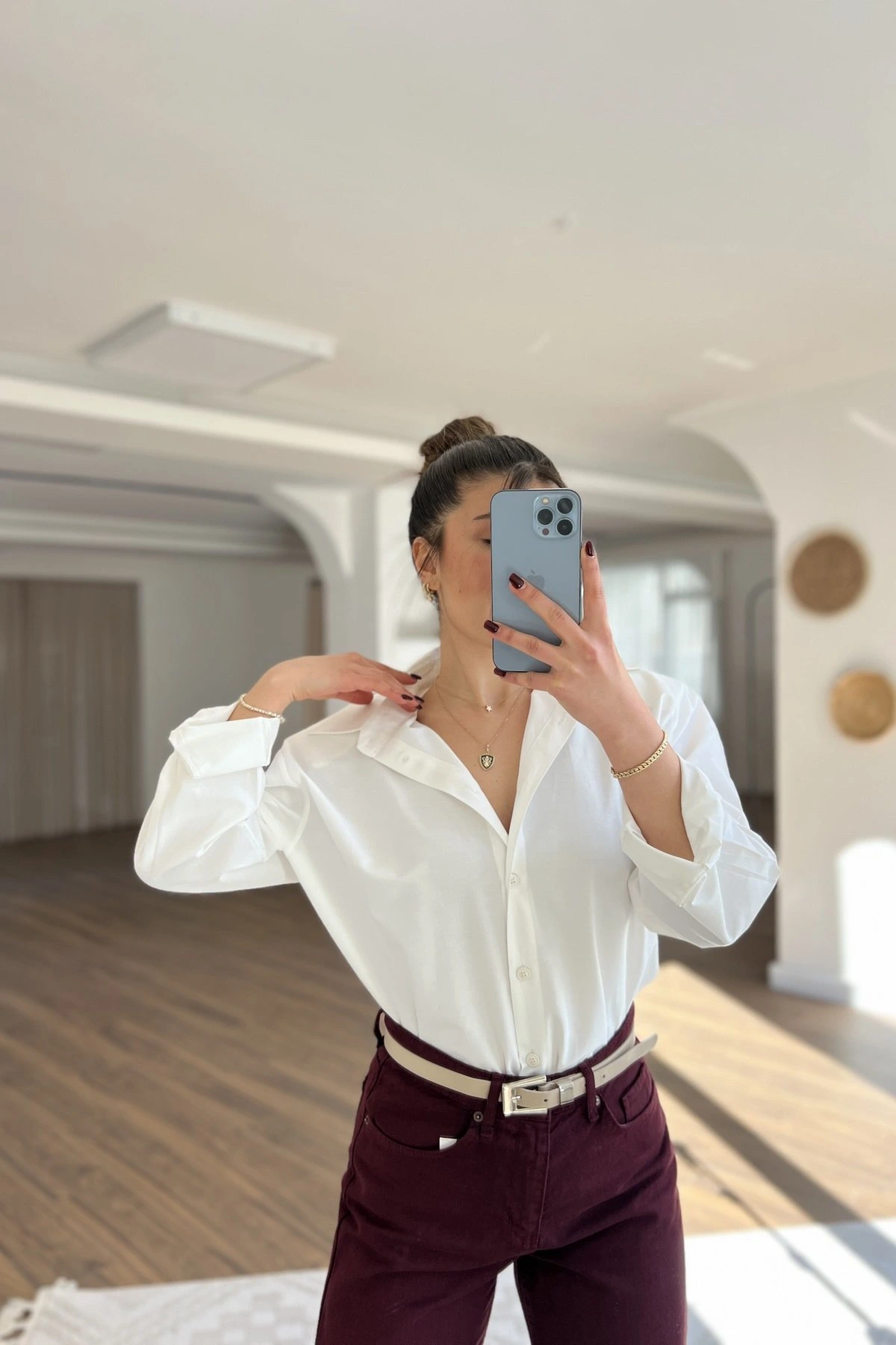 OMUZ VATKA PAMUK SALAŞ GÖMLEK – BEYAZ