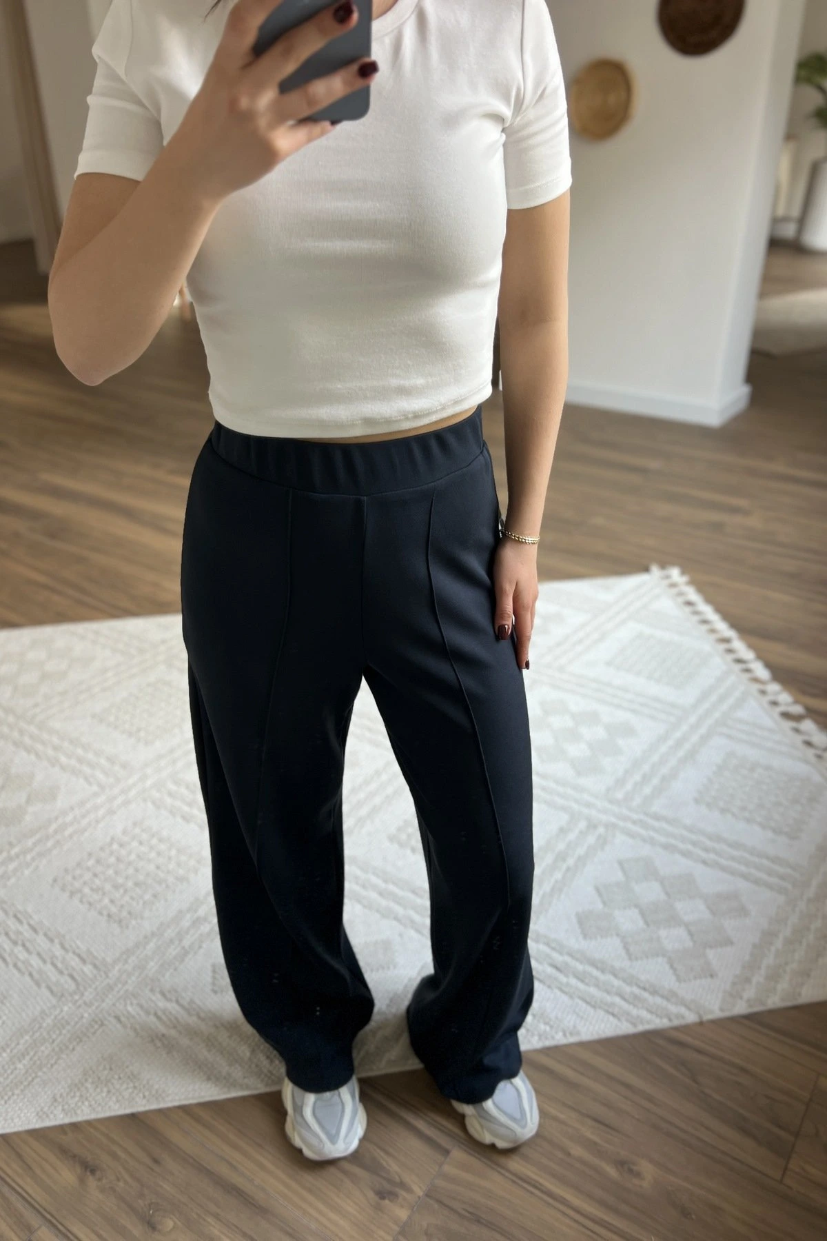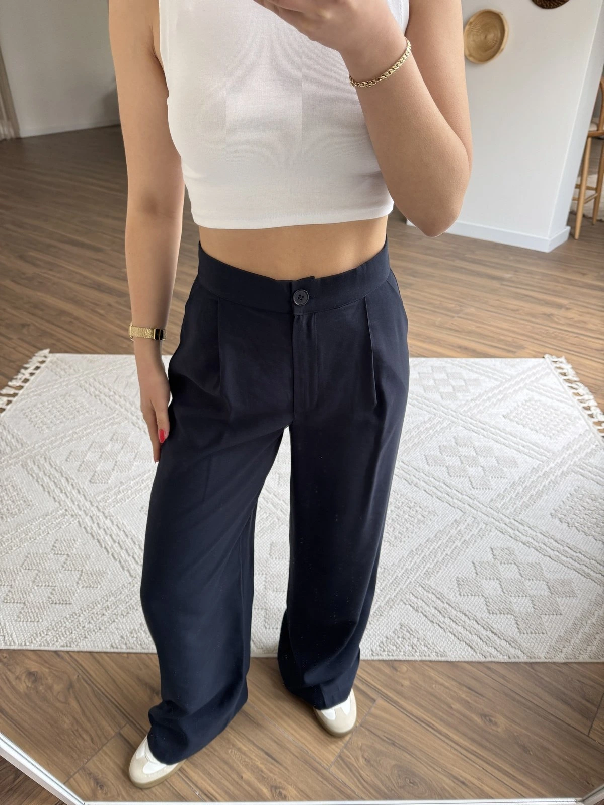ÖN PİLİ TENSEL BOL PAÇA PALAZZO PANTOLON – LACİVERT