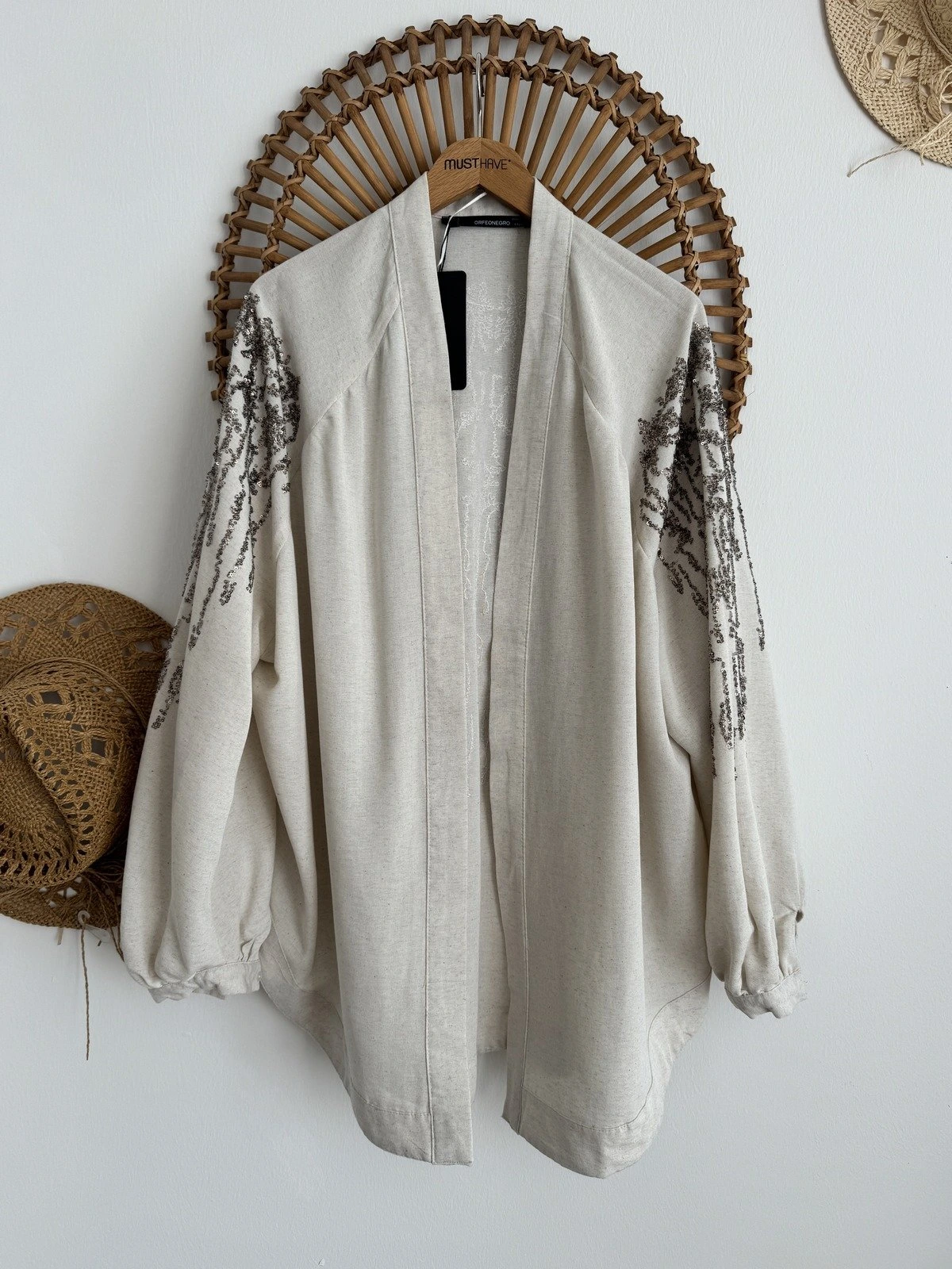 PUL İŞLEME VİSKON KETEN SALAŞ KİMONO – NATUREL