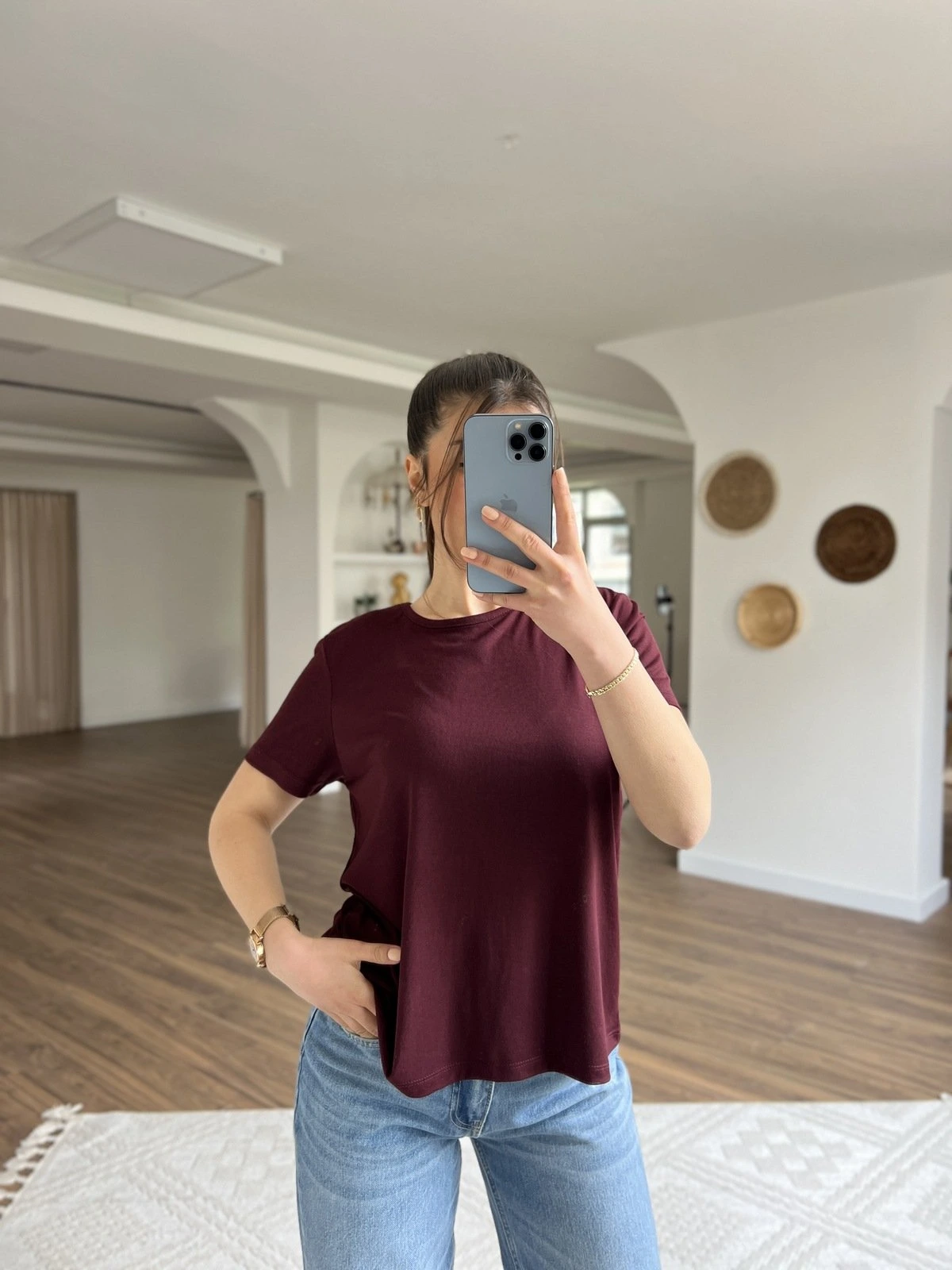 SIFIR YAKA İNCE VİSKON BASİC TİŞÖRT – MÜRDÜM