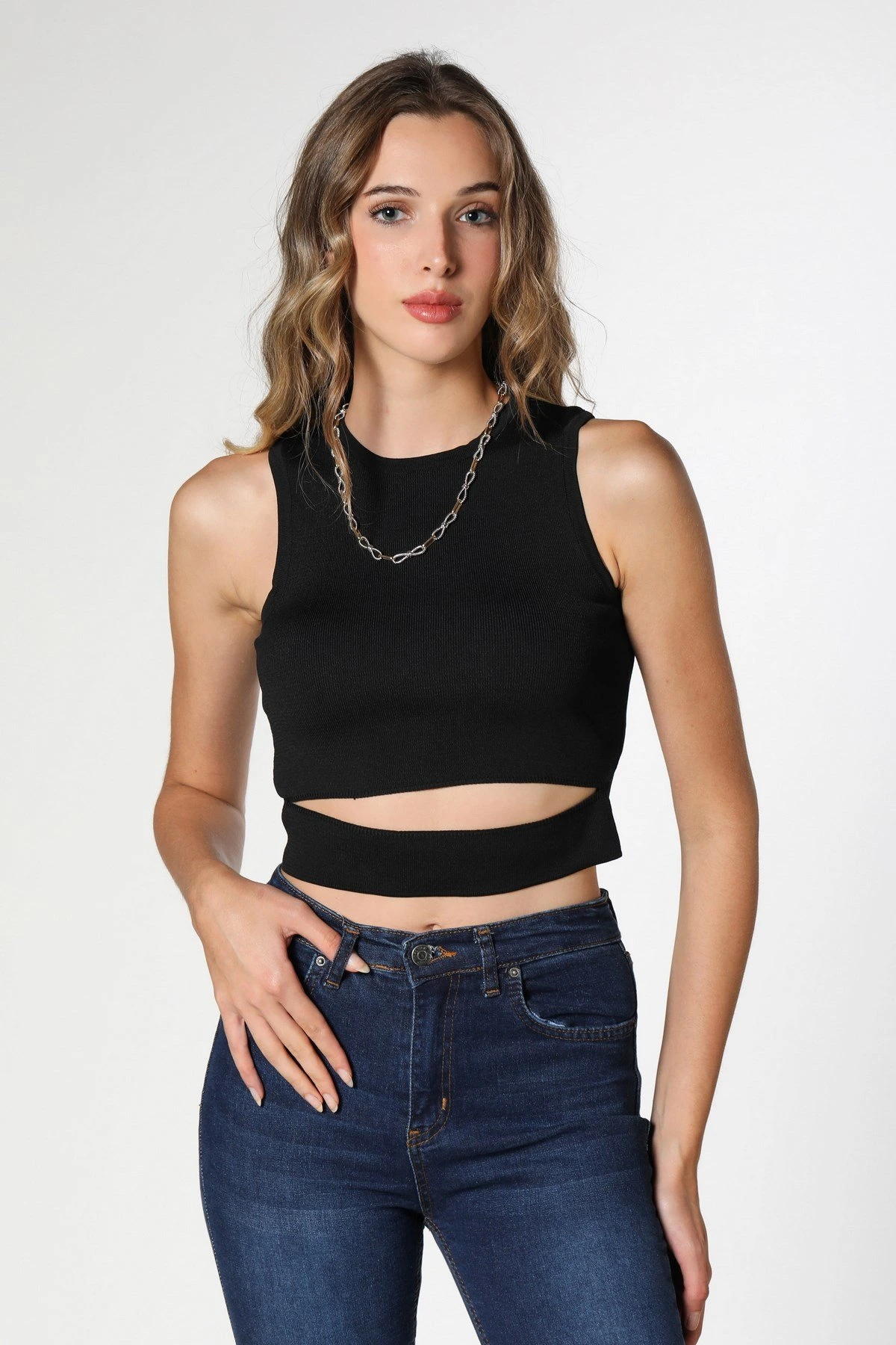 BİSİKLET YAKA BEL PENCERE CROP ATLET – SİYAH