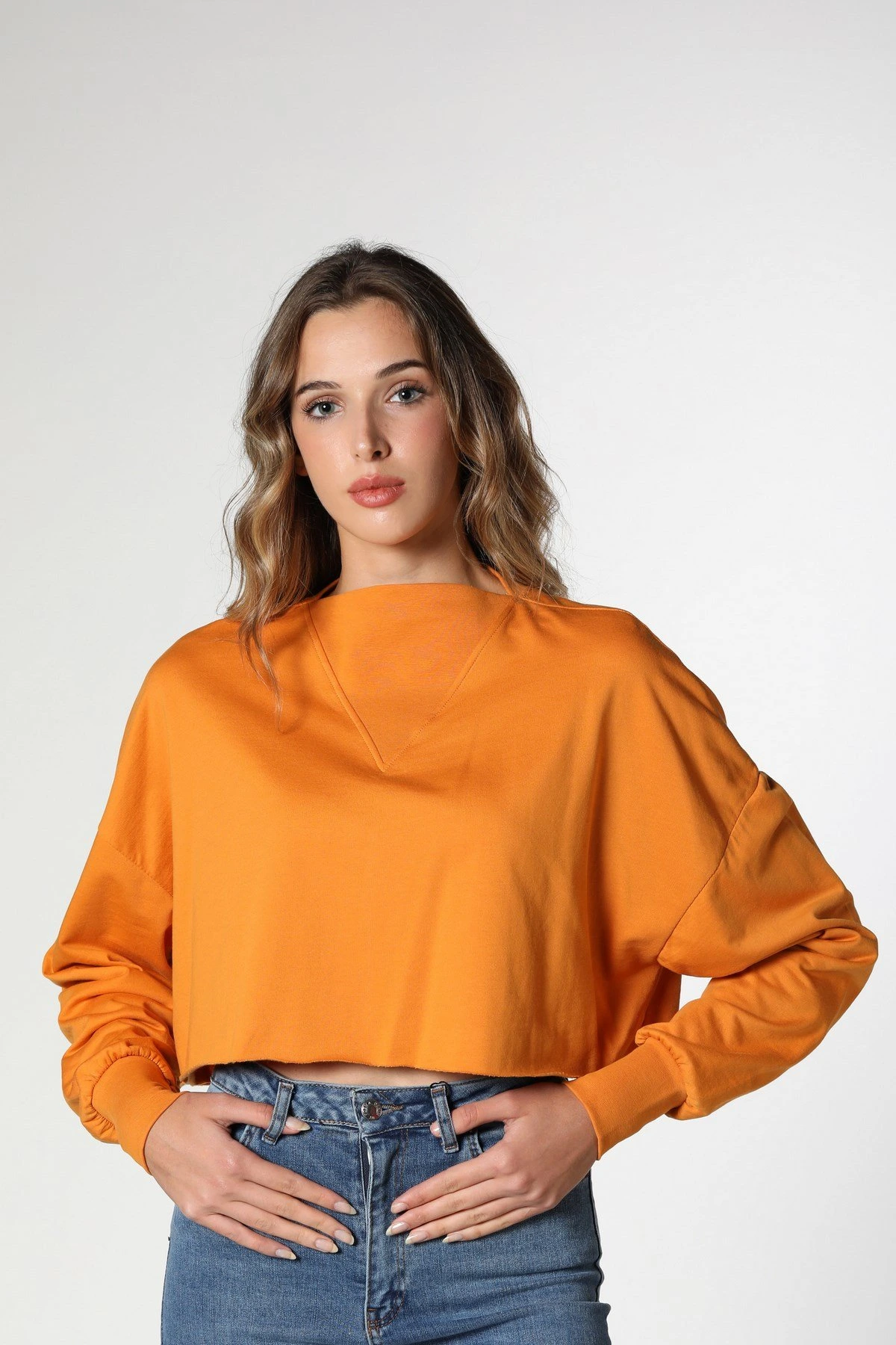DİK YAKA FİTİLLİ SIRT ÇAPRAZ TRİKO – TURUNCU