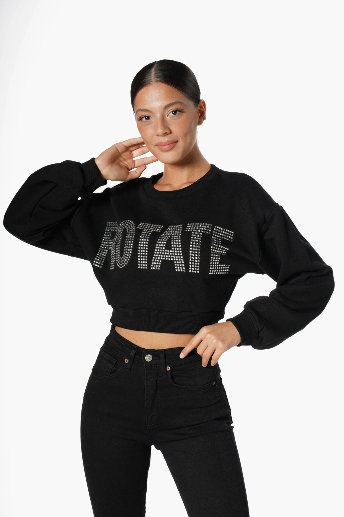 ROTATE TAŞ BASKI CROP SWEAT – SİYAH