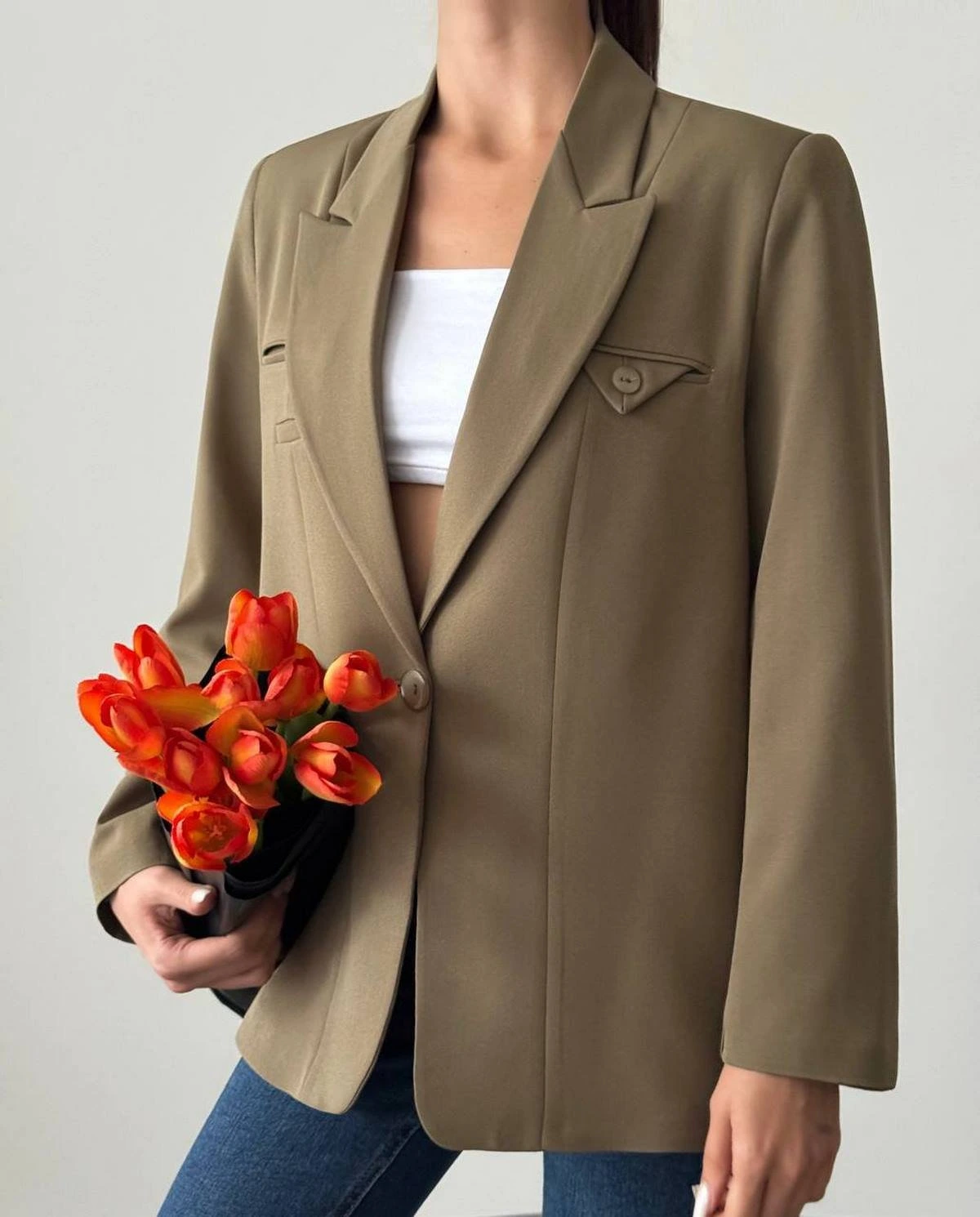 ARKA YIRTMAÇLI KRUVAZE BLAZER CEKET – HAKİ