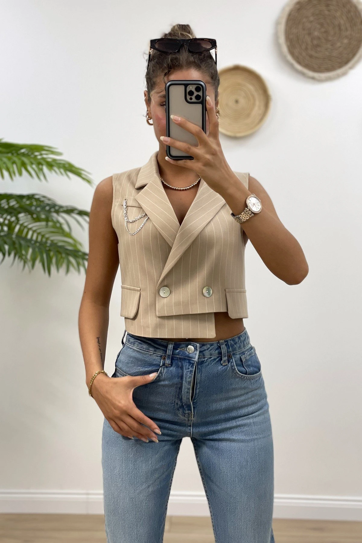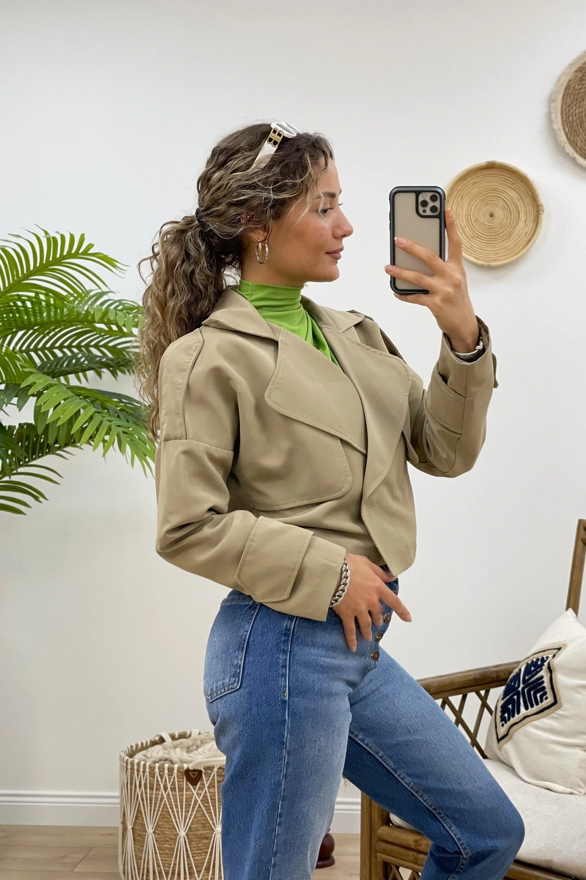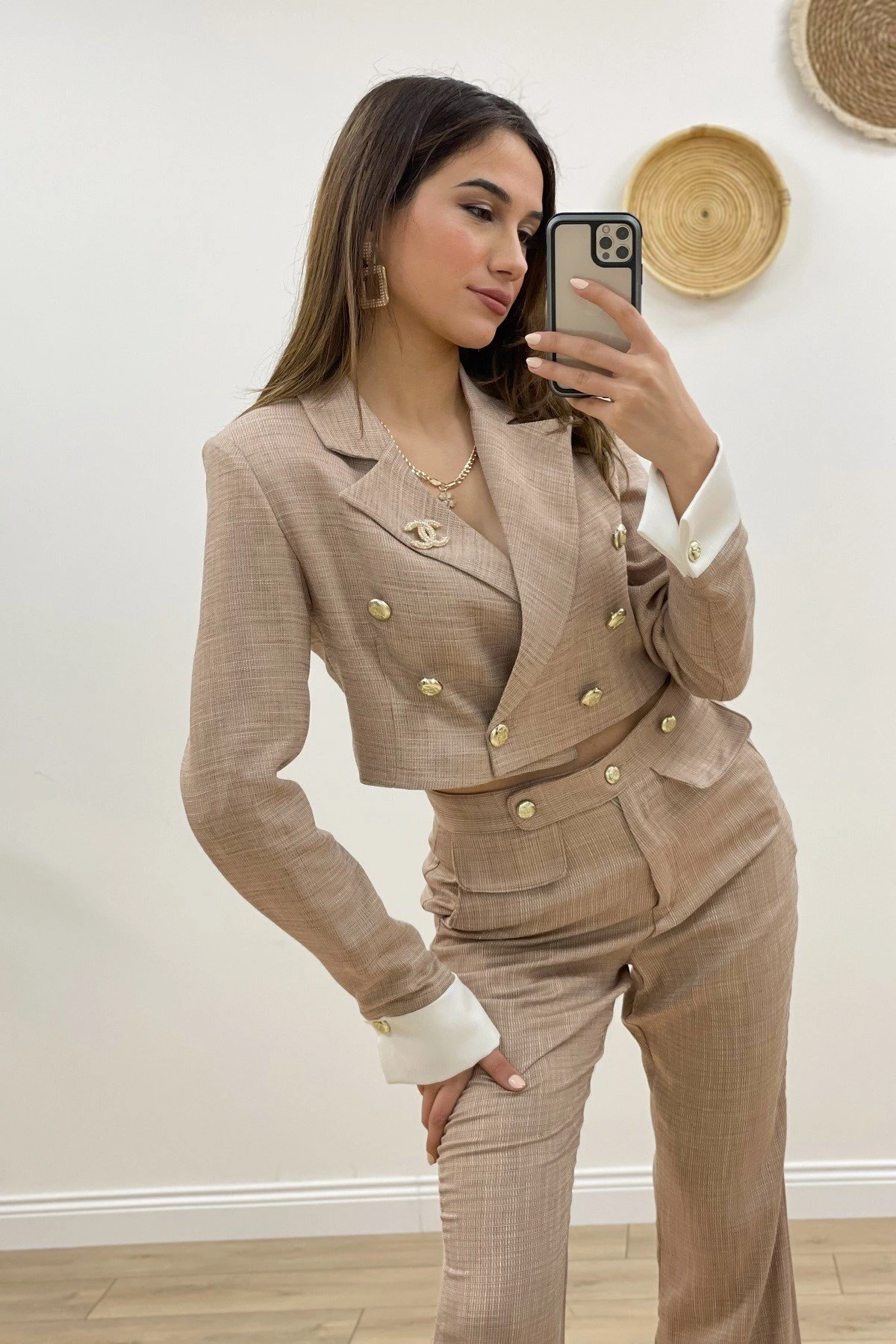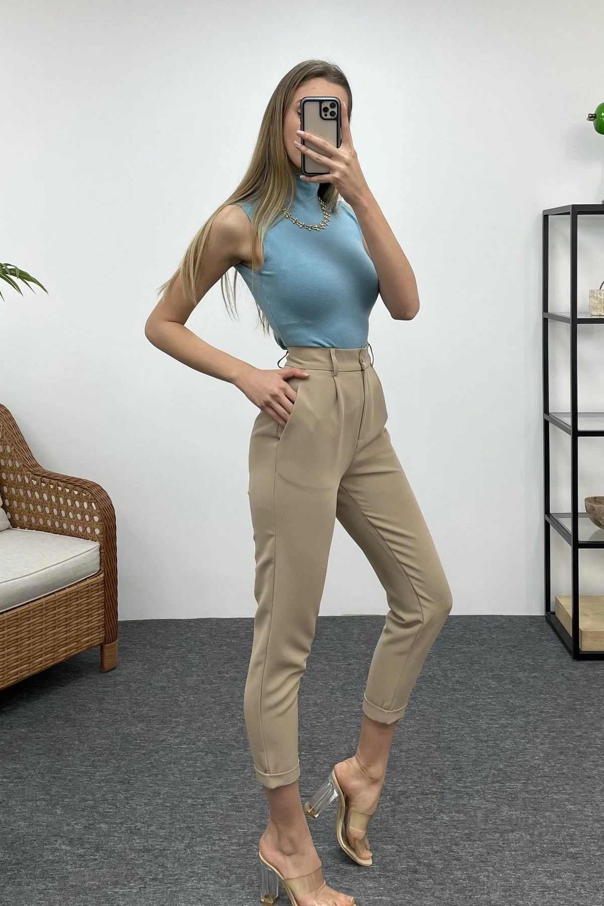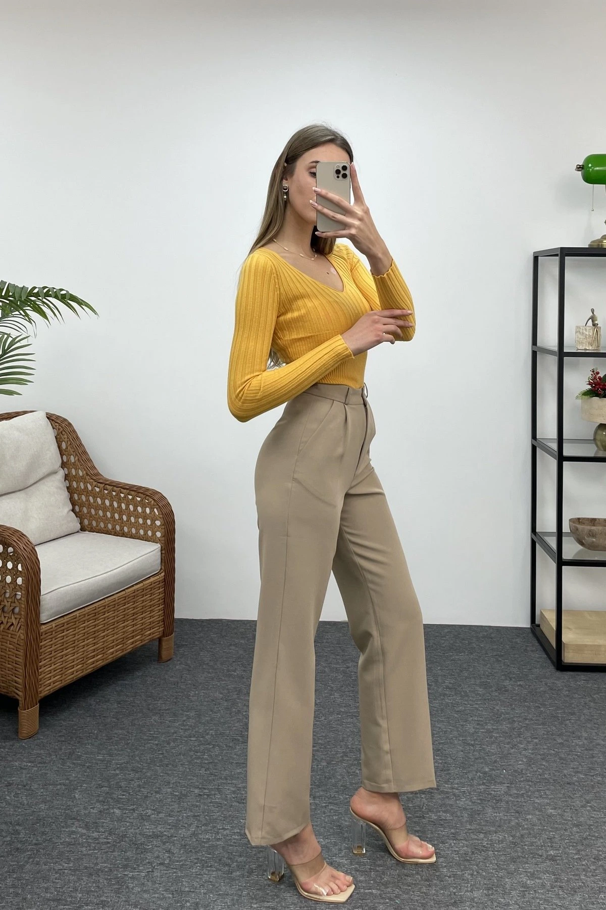 PAÇA ÇITÇITLI DERİ PANTOLON – VİZON