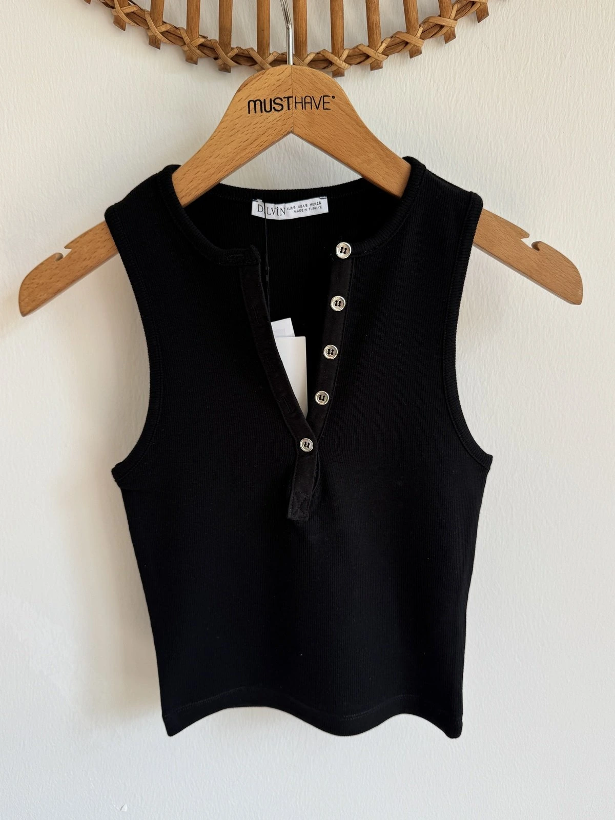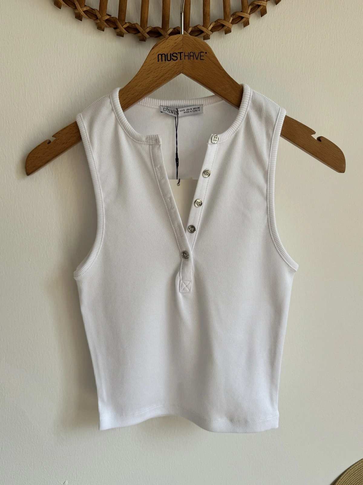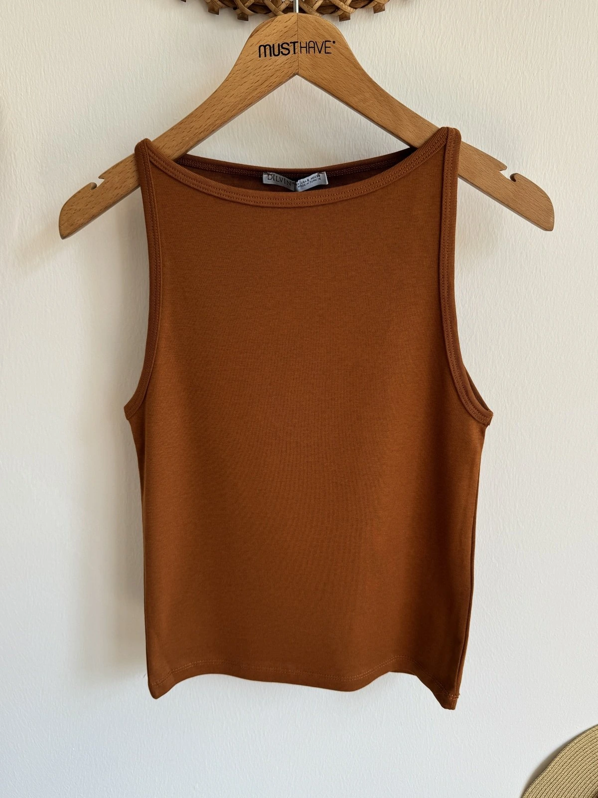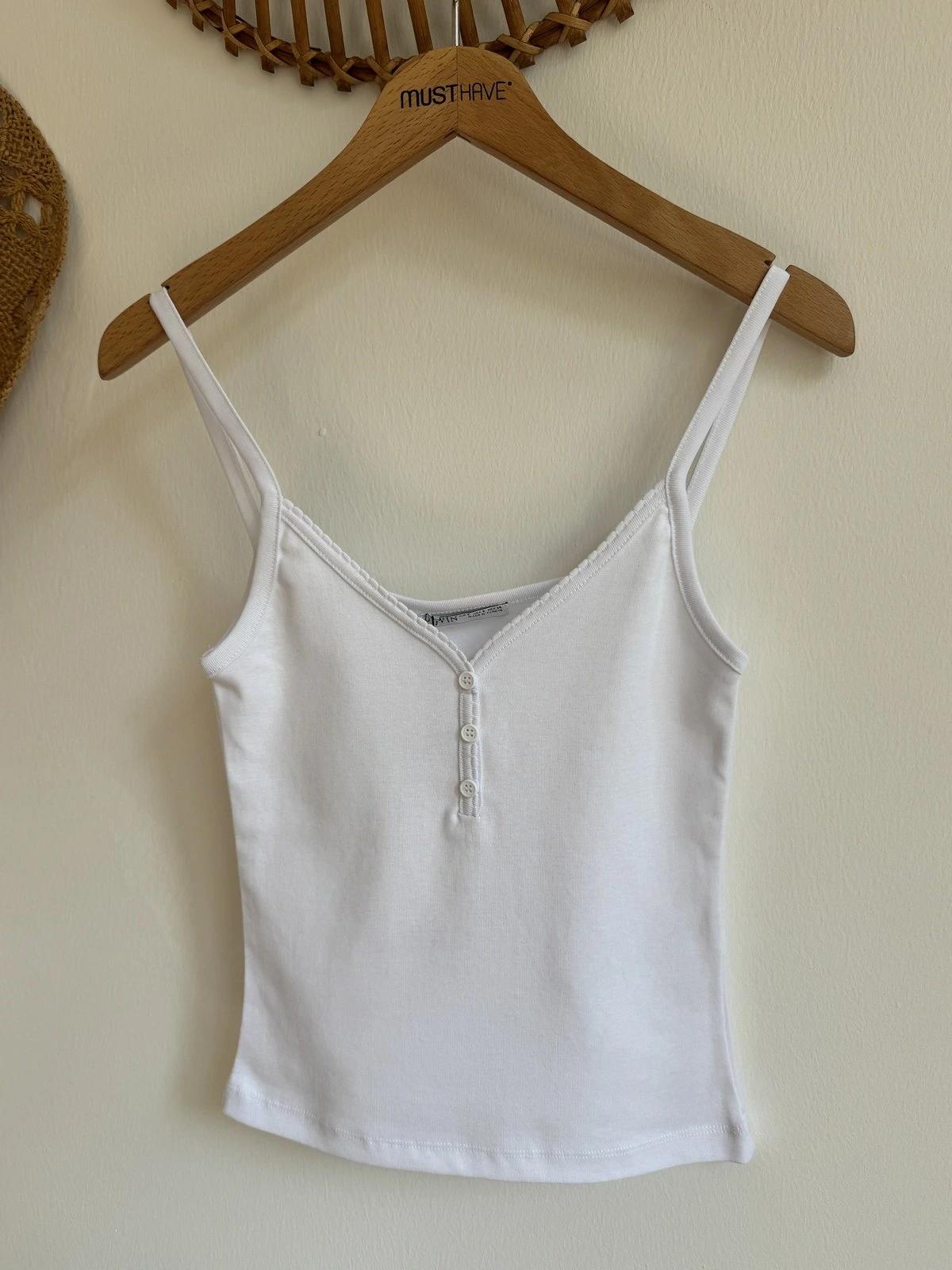 ÖN TAŞ BASKI HALTER YAKA FİTİLLİ PAMUK ATLET – EKRU