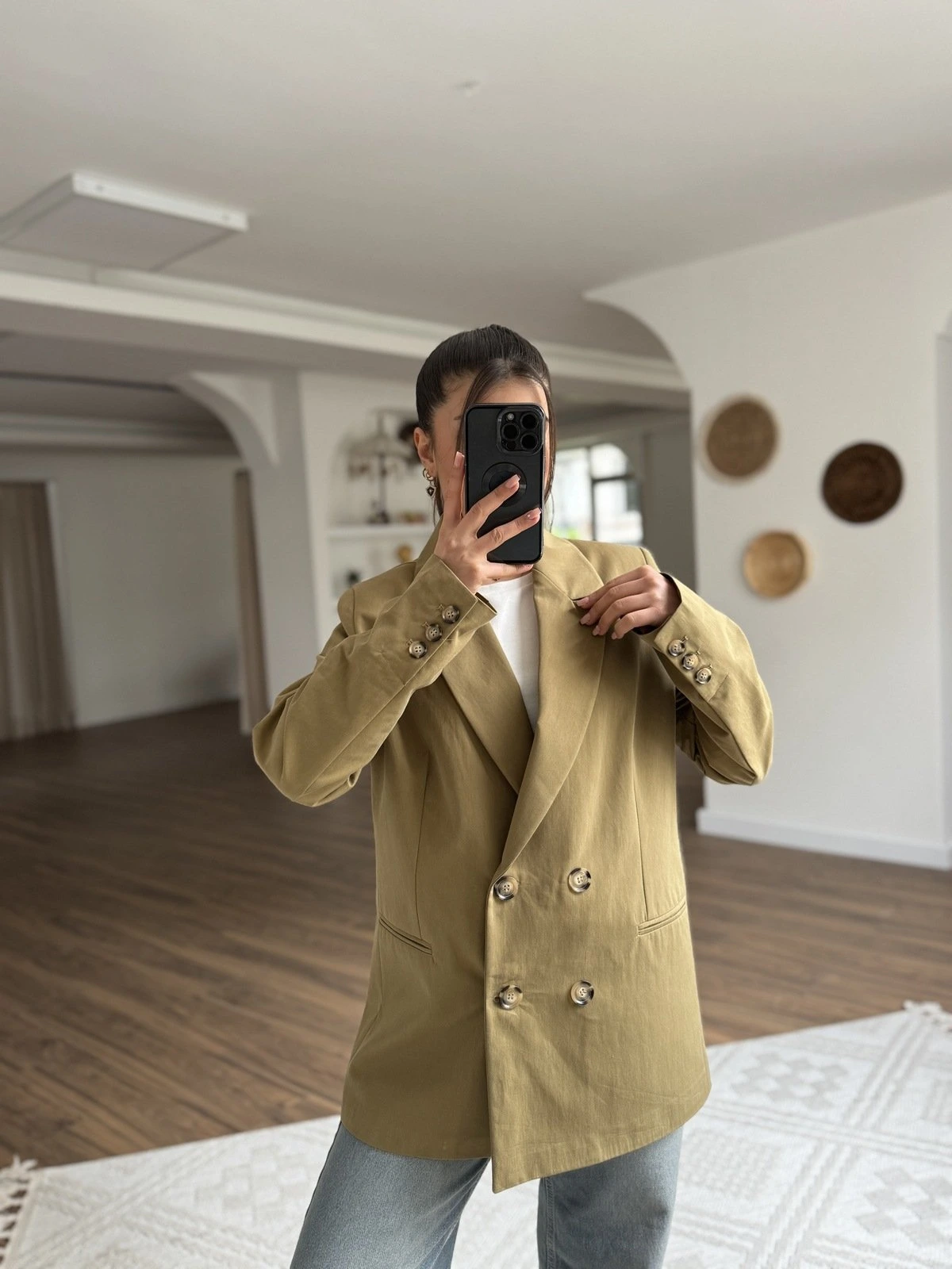 4 KEMİK DÜĞME KRUVAZE PAMUK SALAŞ CEKET – KARAMEL