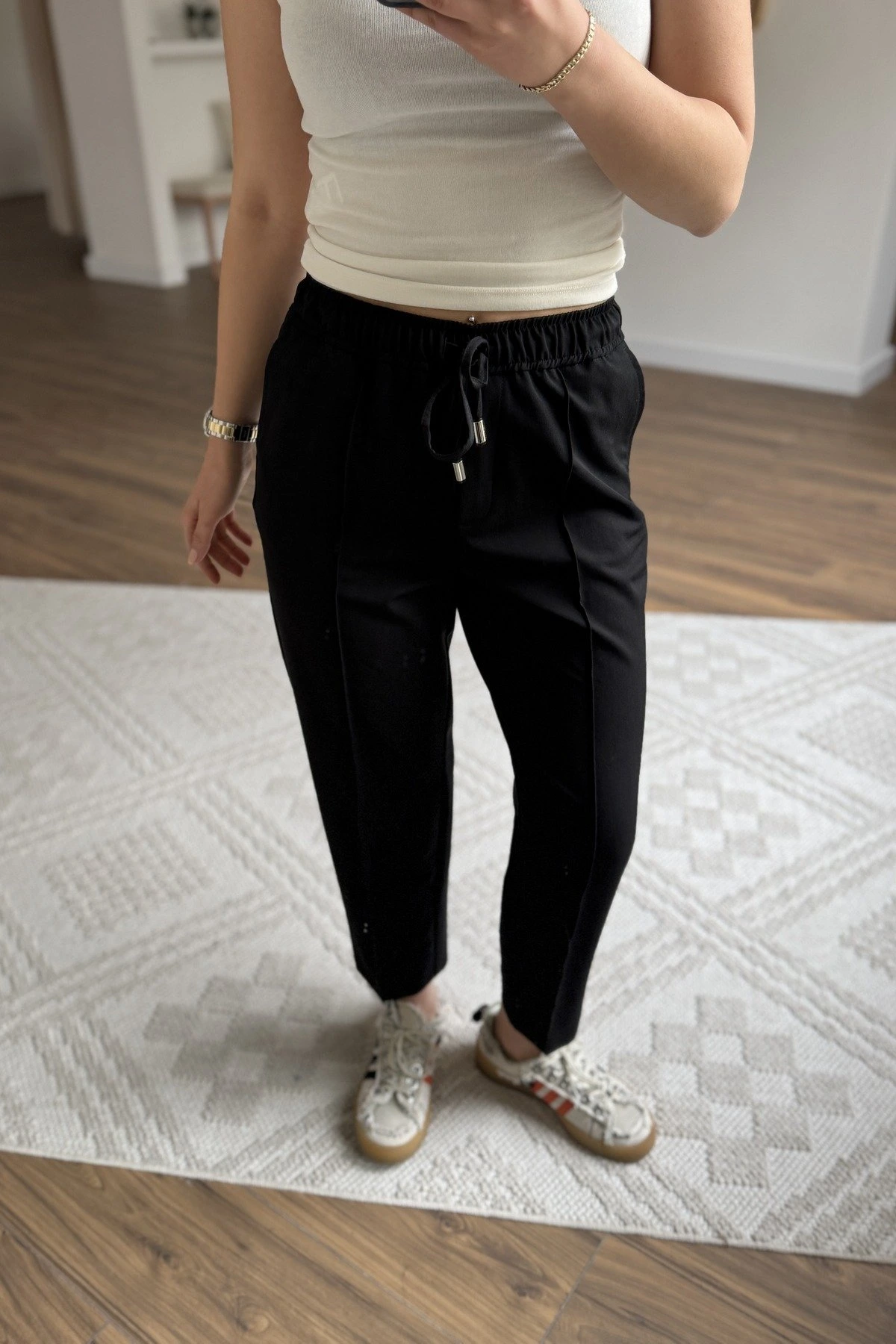 BEL LASTİKLİ CEPLİ ÖN DİKİŞ VİSKON KARIŞIM PANTOLON – SİYAH
