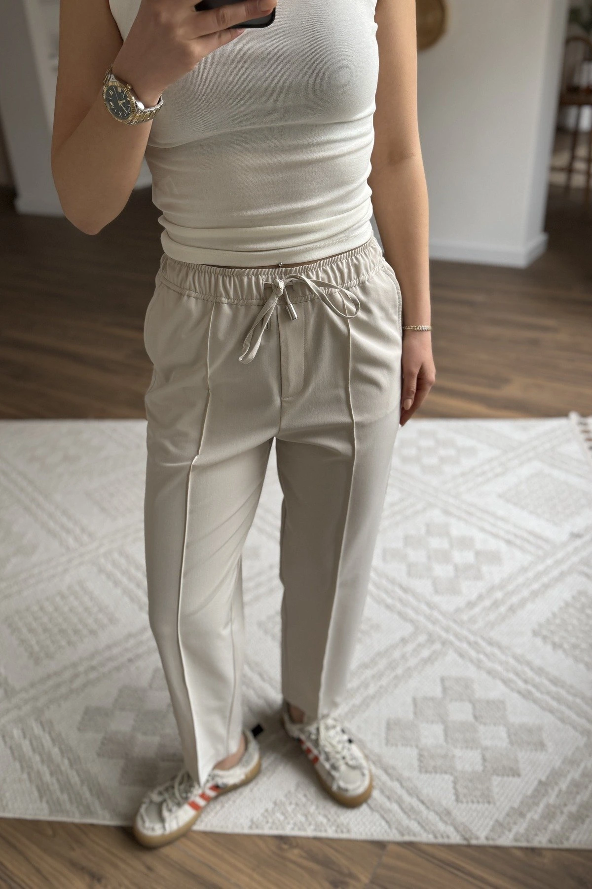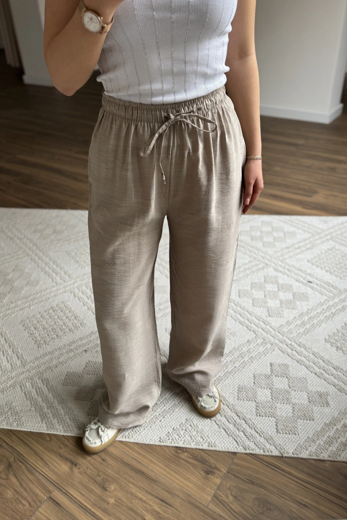 BEL LASTİKLİ CEPLİ ÖN DİKİŞ VİSKON KARIŞIM PANTOLON – TAŞ
