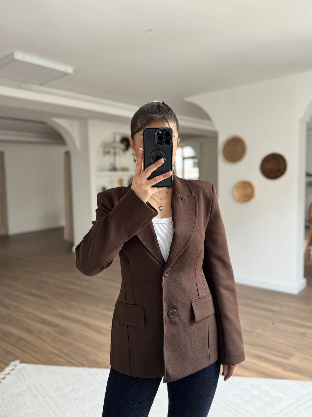 BELDEN OTURMA KAPAK CEP ÇİFT DÜĞME CEKET – KAHVE