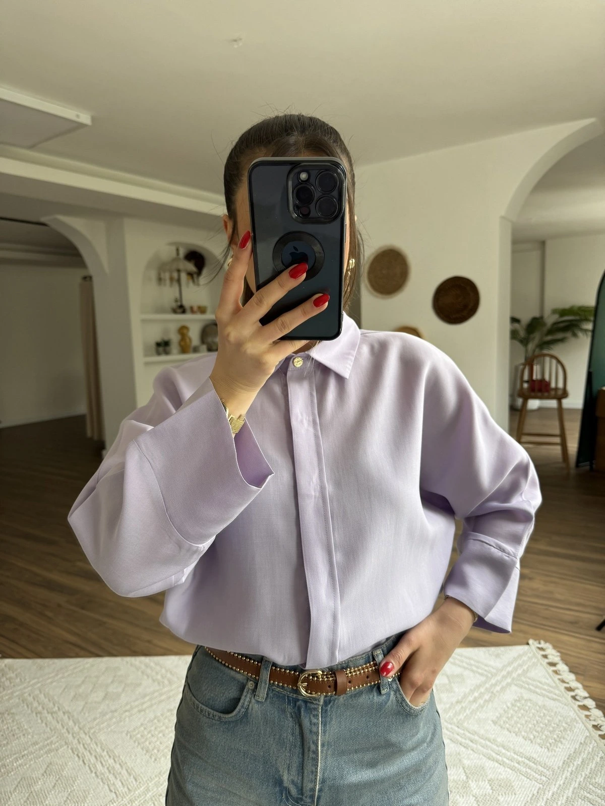 GİZLİ DÜĞME TRUVAKAR KOL PAMUK KETEN GÖMLEK – LİLA