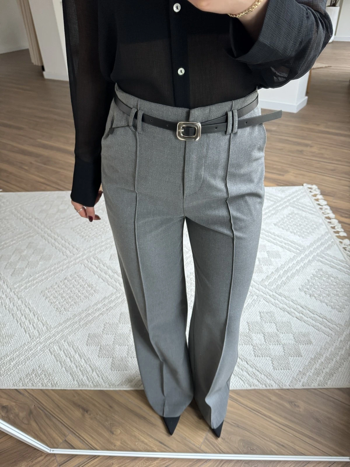 ÖN ÇİFT BRİT VİSKON PALAZZO KEMERLİ PANTOLON – GRİ