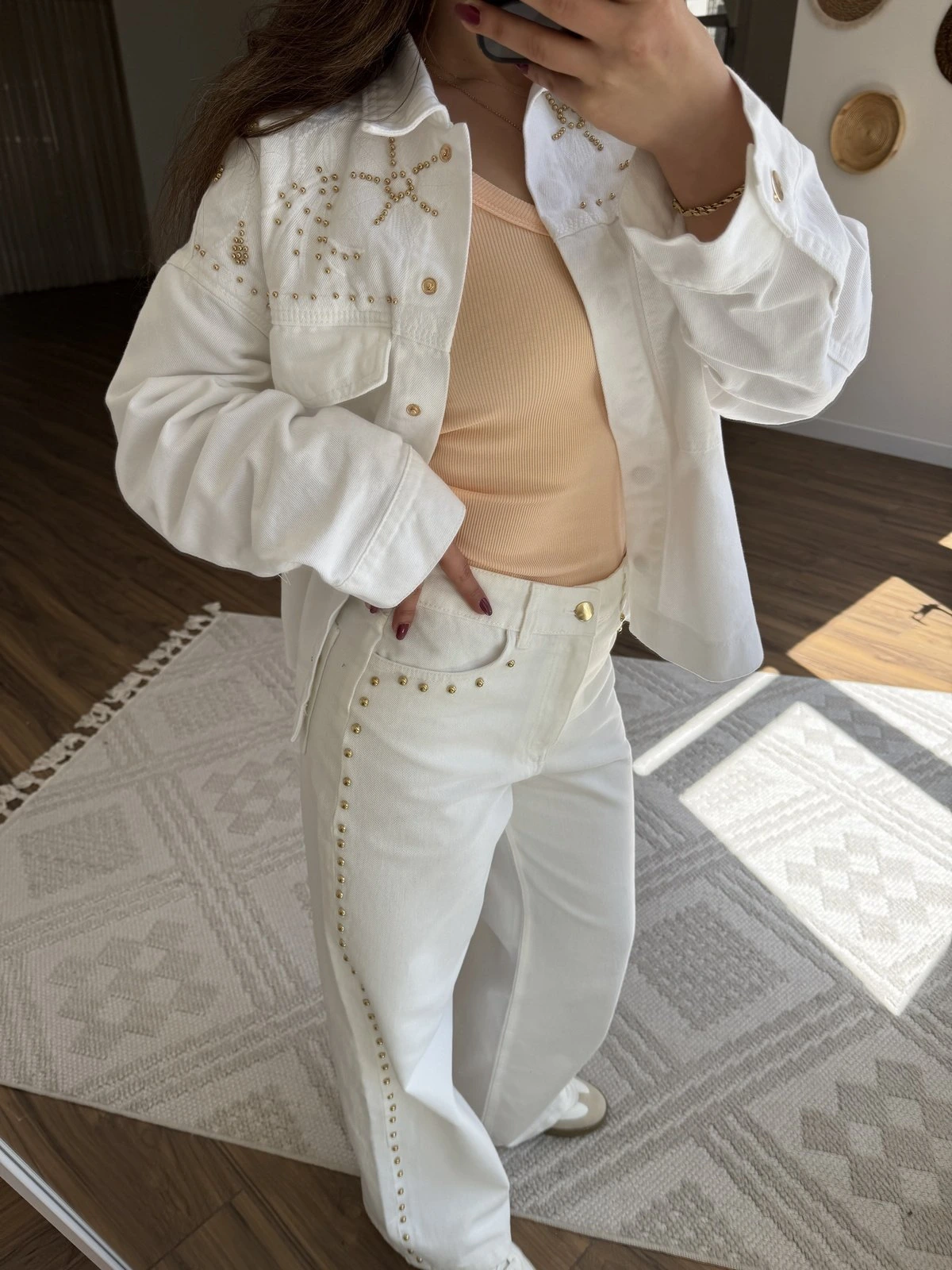 YAN GOLD DROPLU PAMUK BOL PAÇA JEAN – EKRU