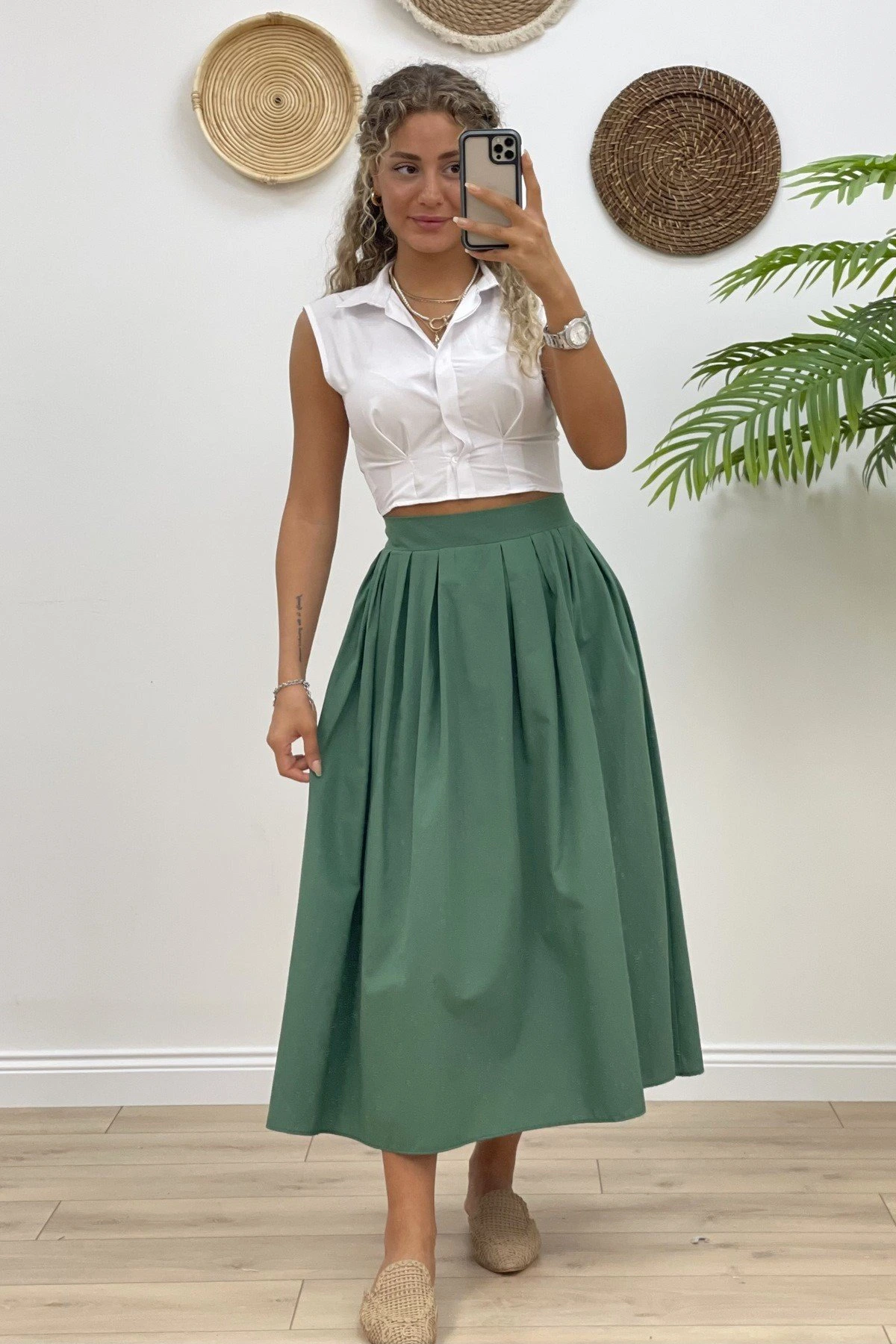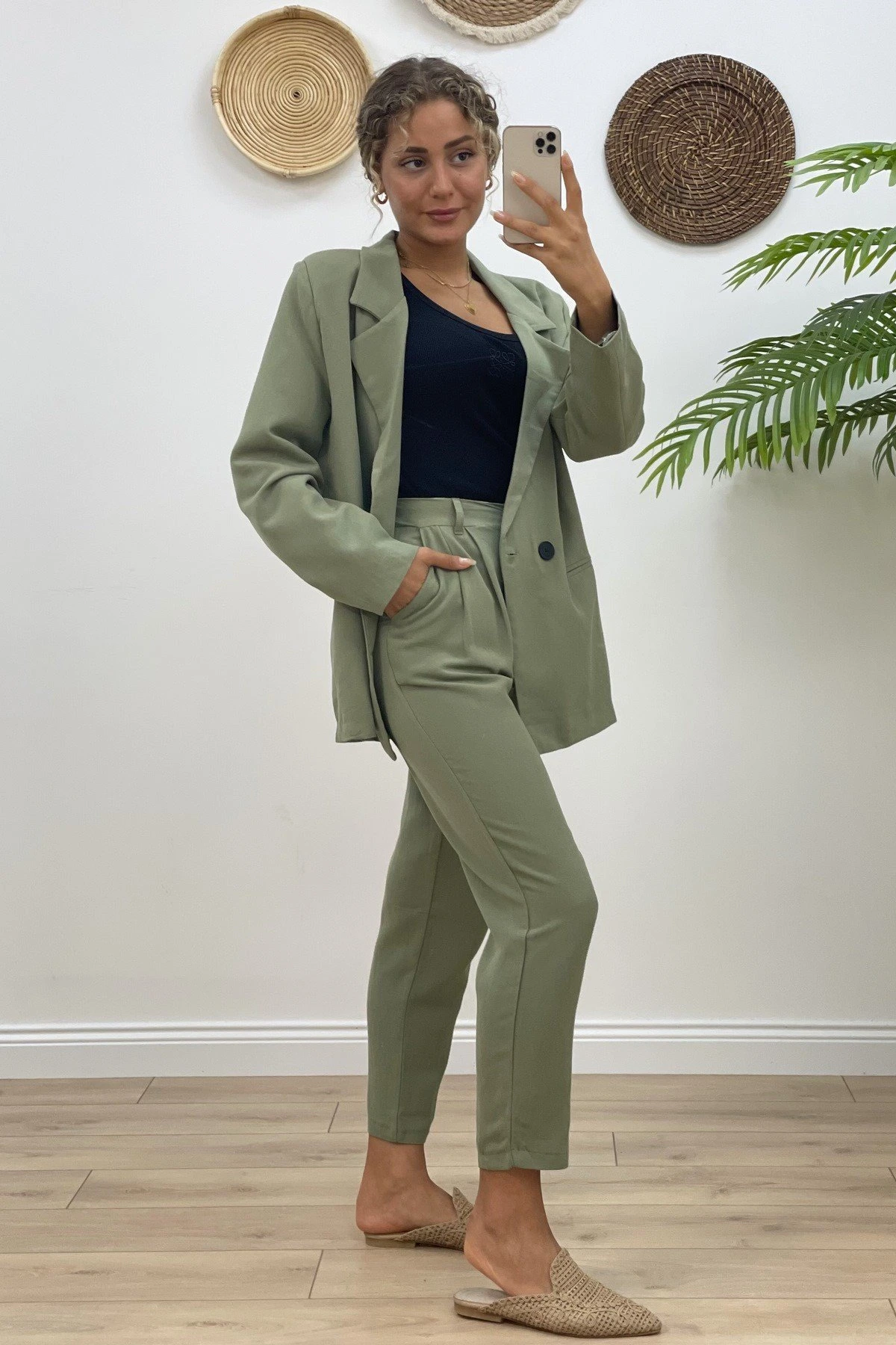 YÜKSEK BEL GENİŞ PAÇA PANTOLON – HAKİ