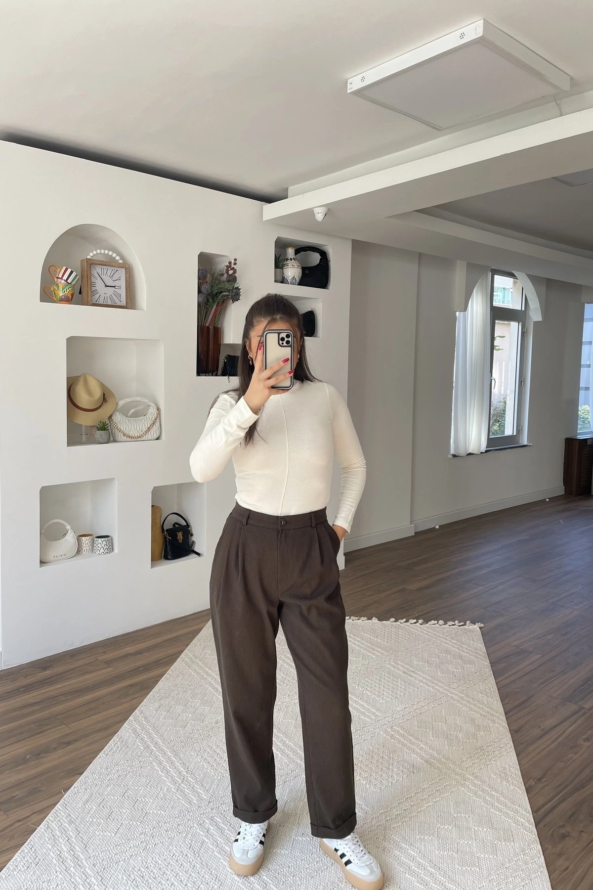 BEL LASTİK İNCE PANTOLON – KAHVE