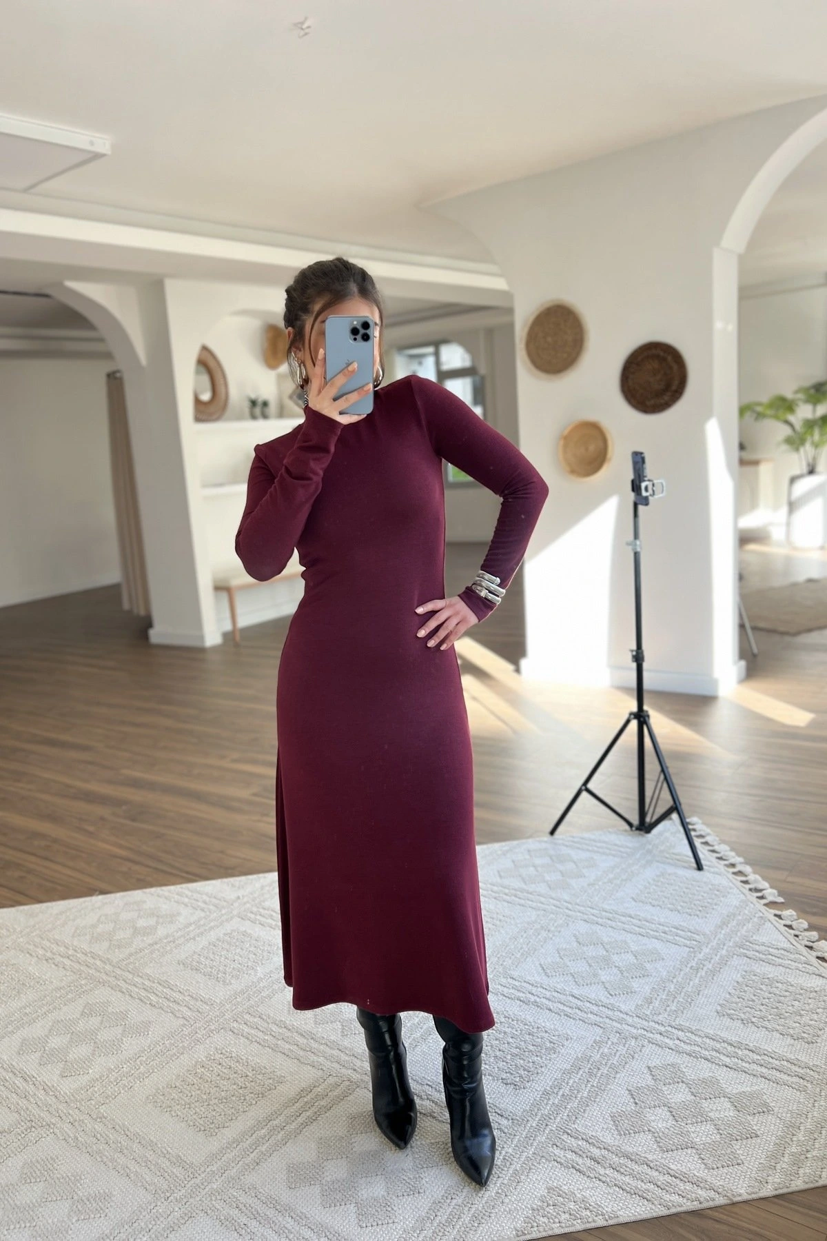YÜKSEK BEL VİSKON LİKRALI FLARE TAYT – BORDO