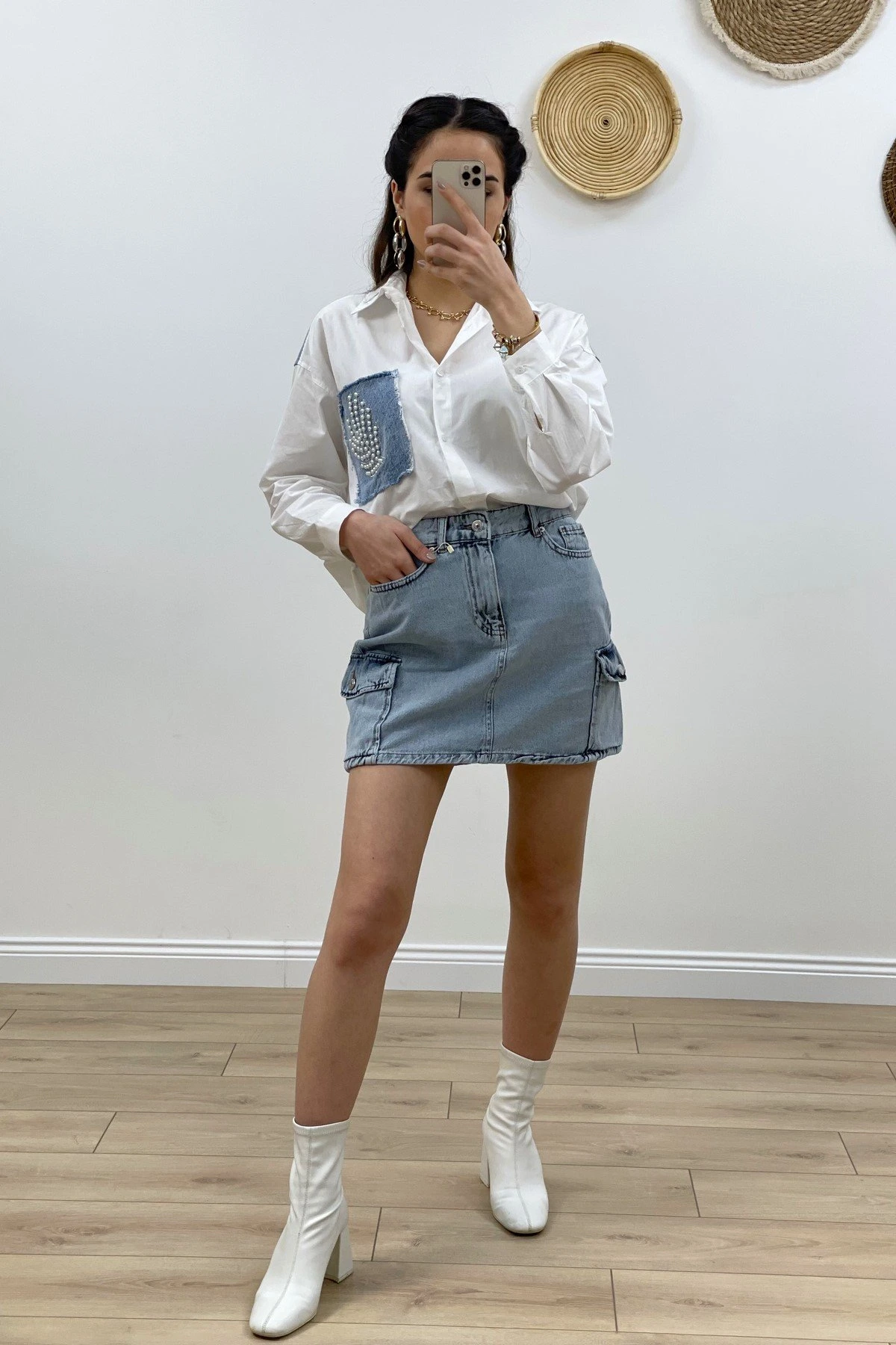 KARGO CEP PARÇA BOYALI MİDİ BOY ETEK – BEJ