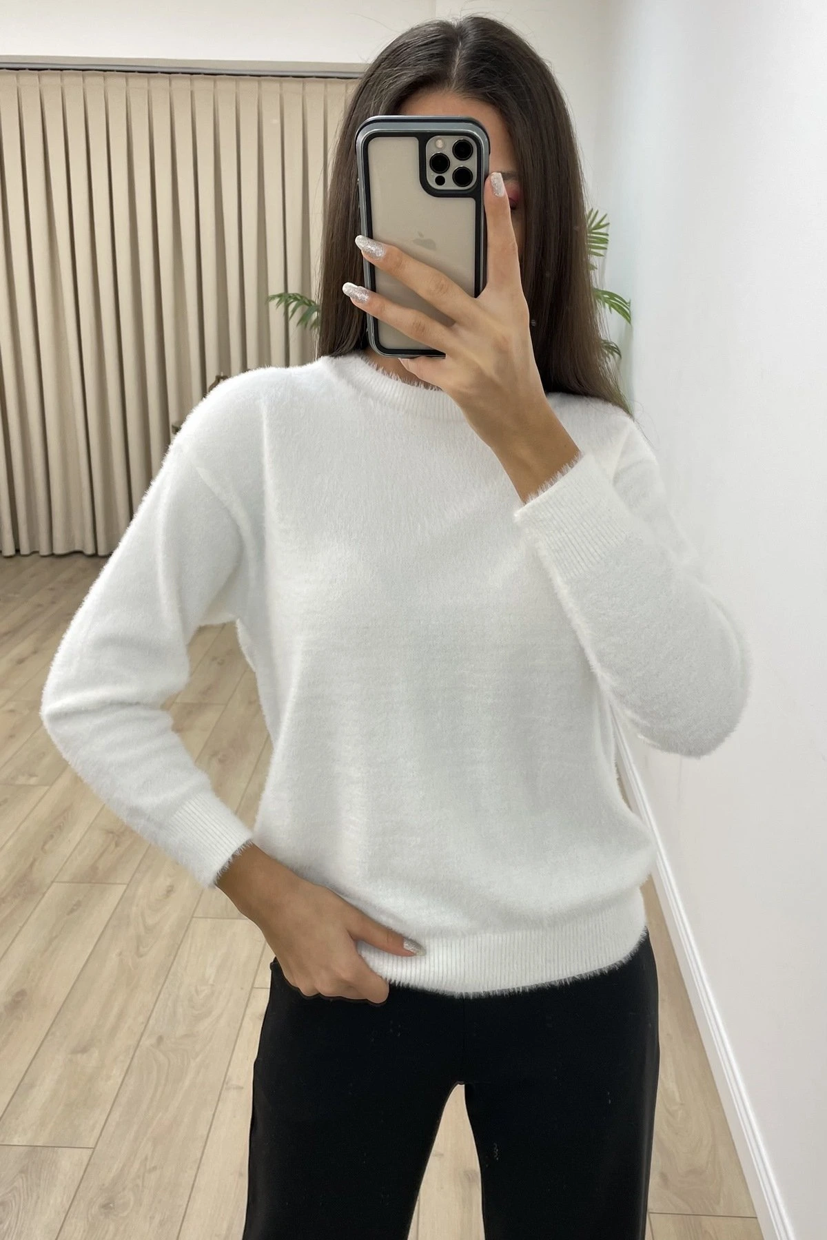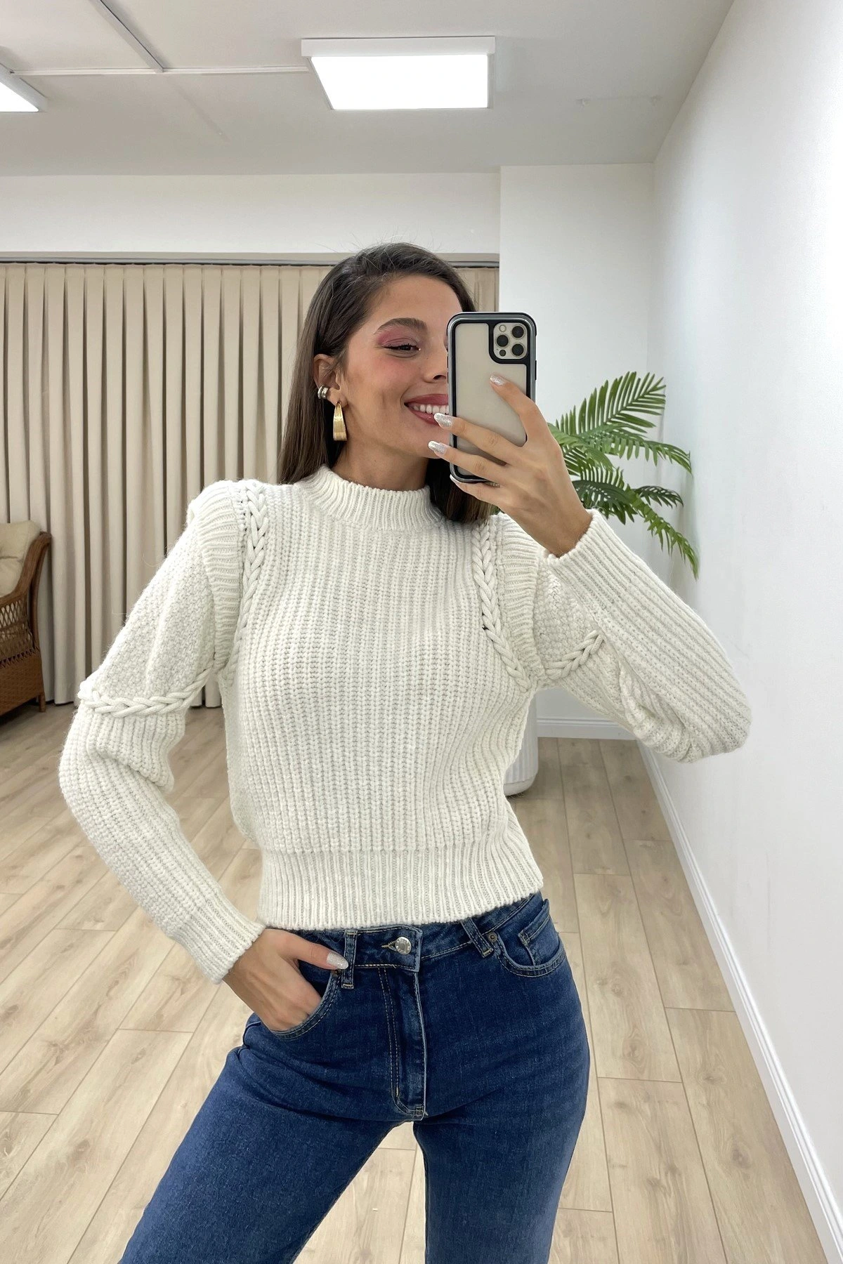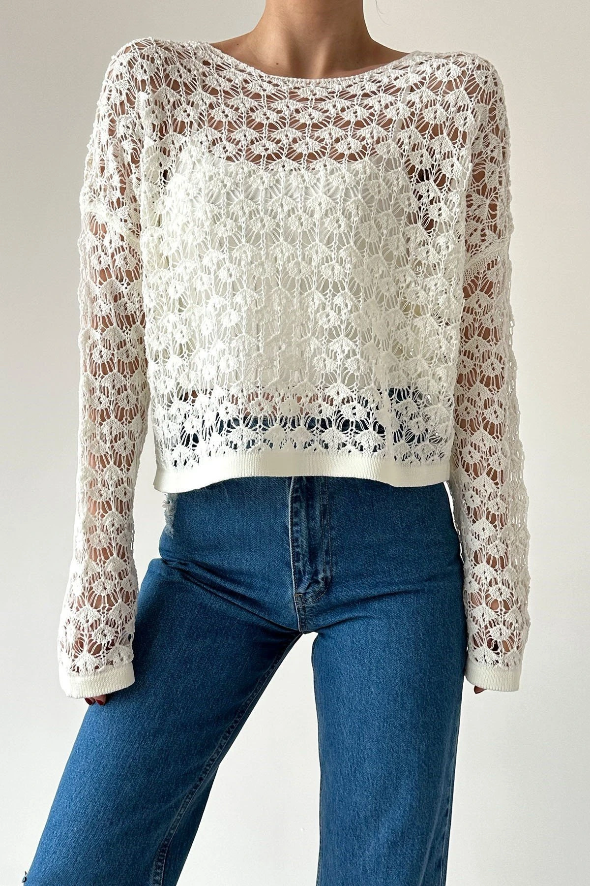 BİSİKLET YAKA AJURLU VİSKON BLUZ – EKRU