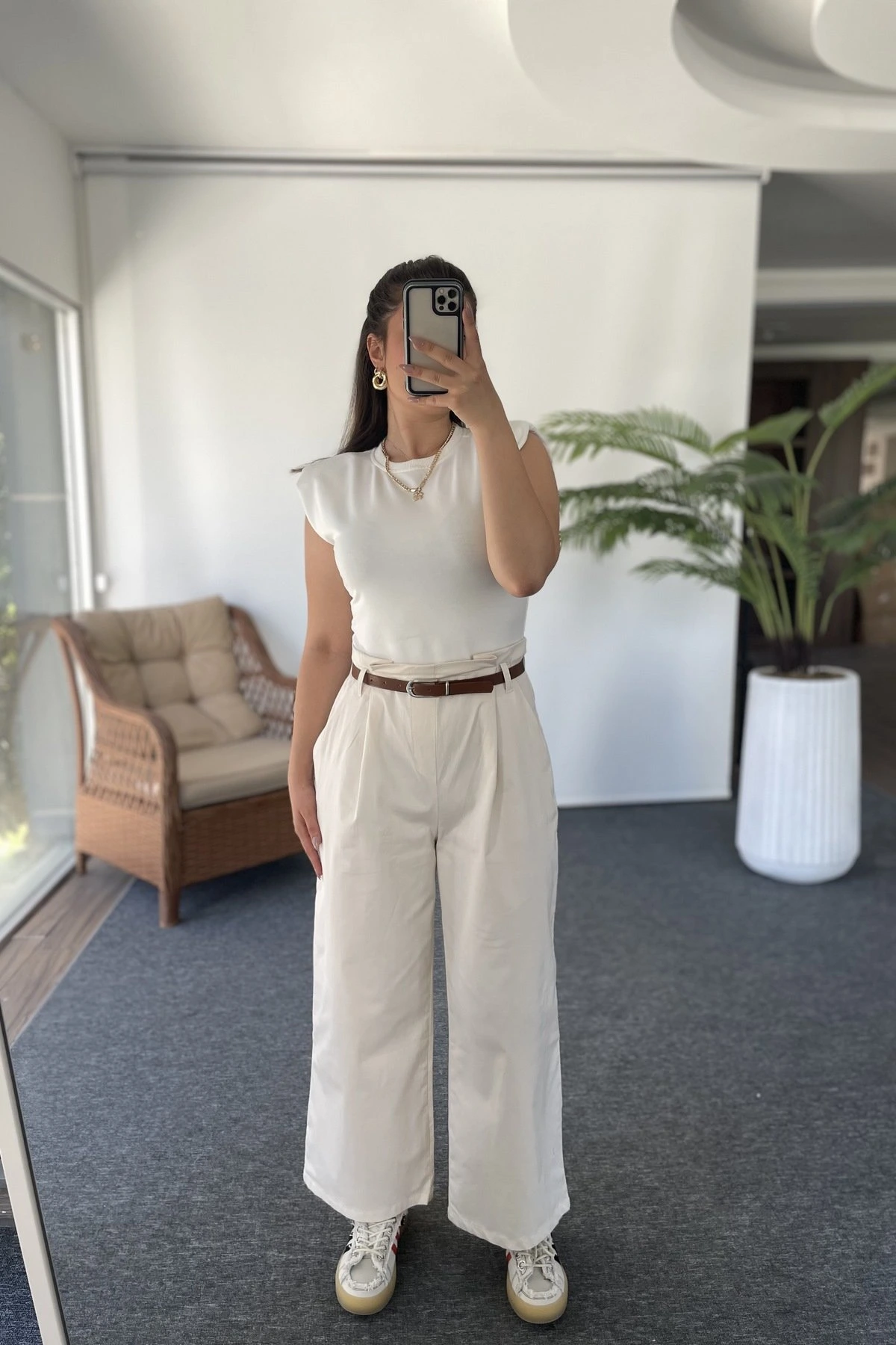 BEL LASTİK ASTARLI ÖN DİKİŞ KETEN PANTOLON – EKRU