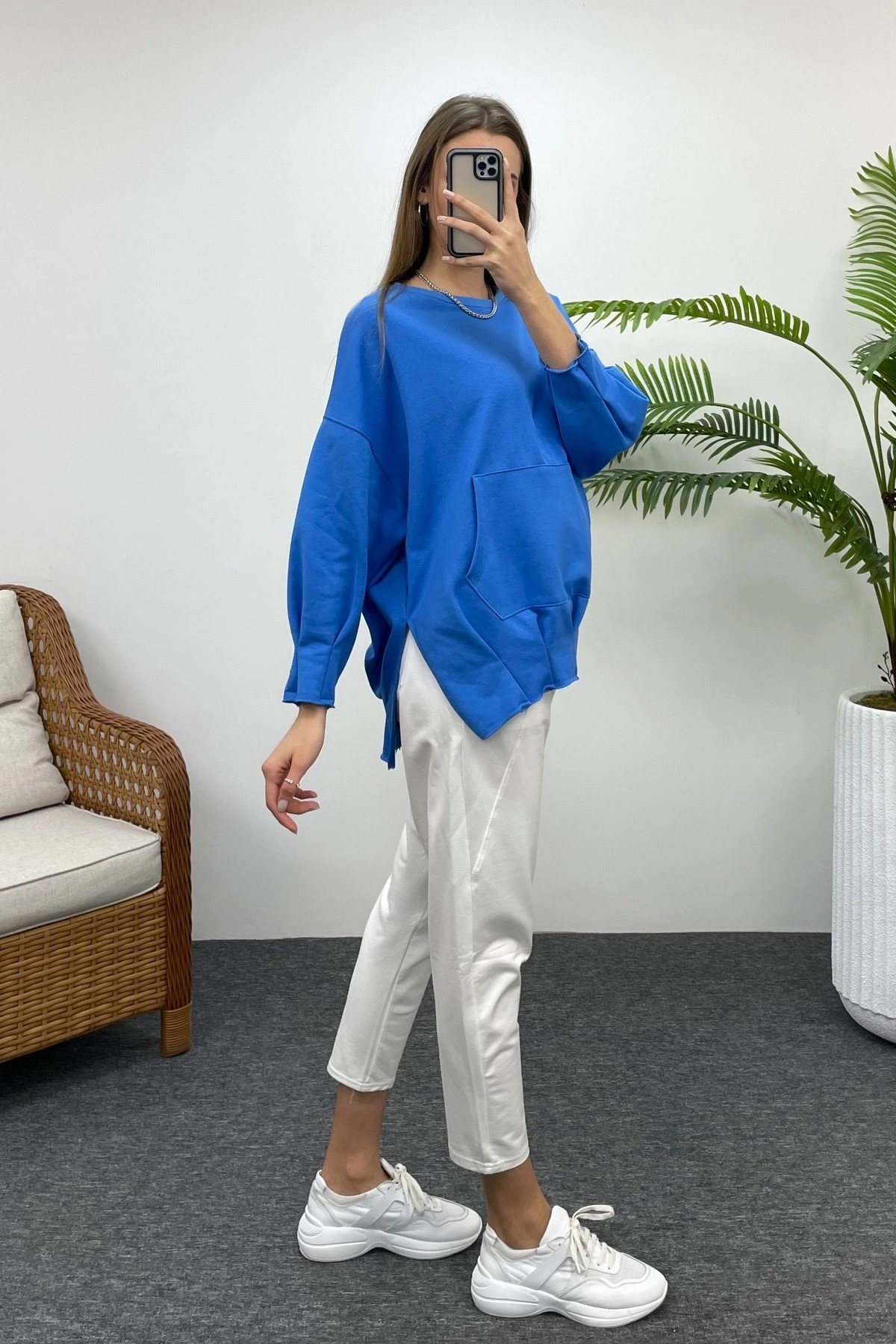 STYLİSH ARKA UZUN SWEAT – MAVİ