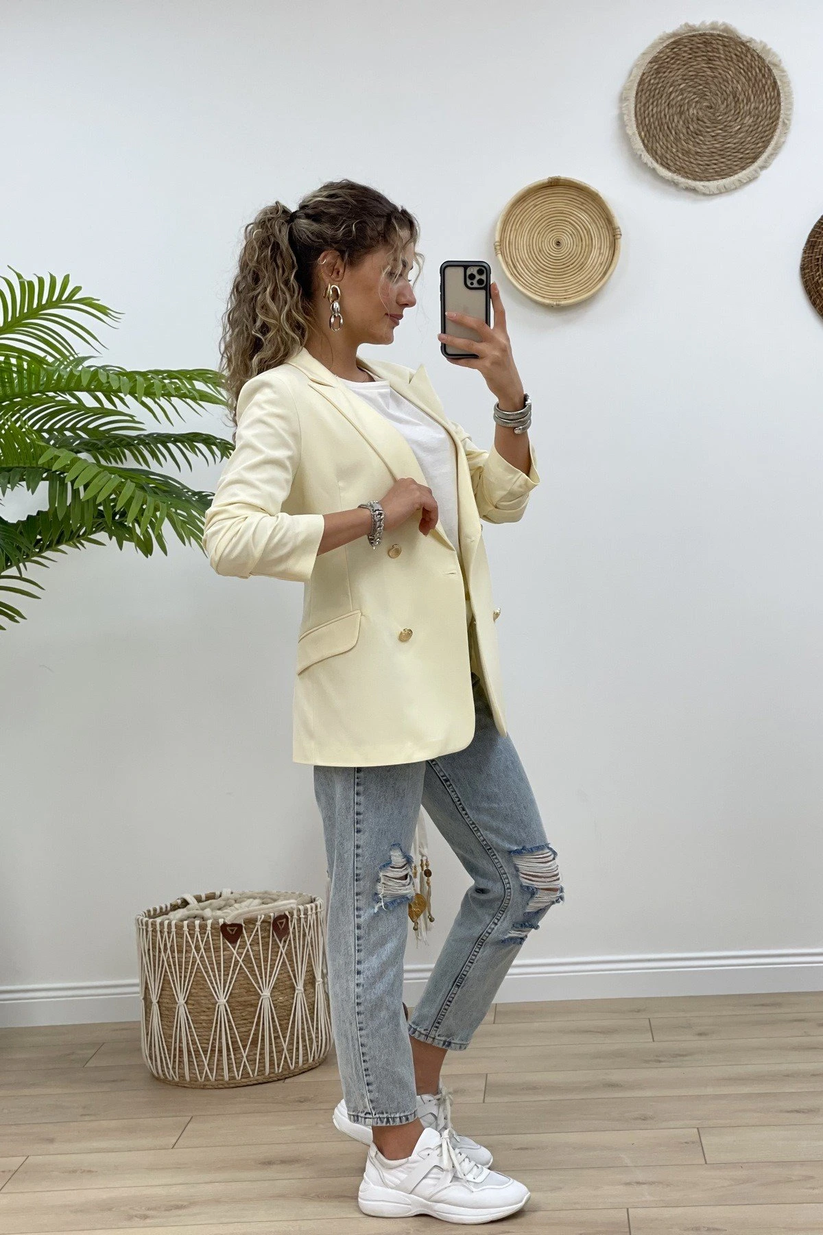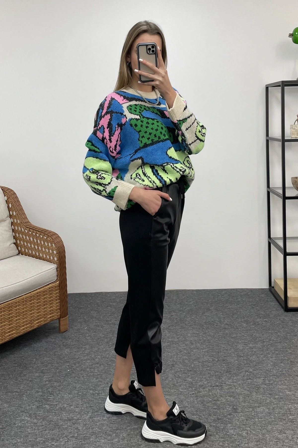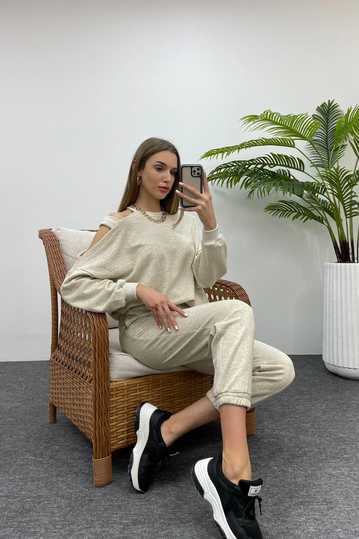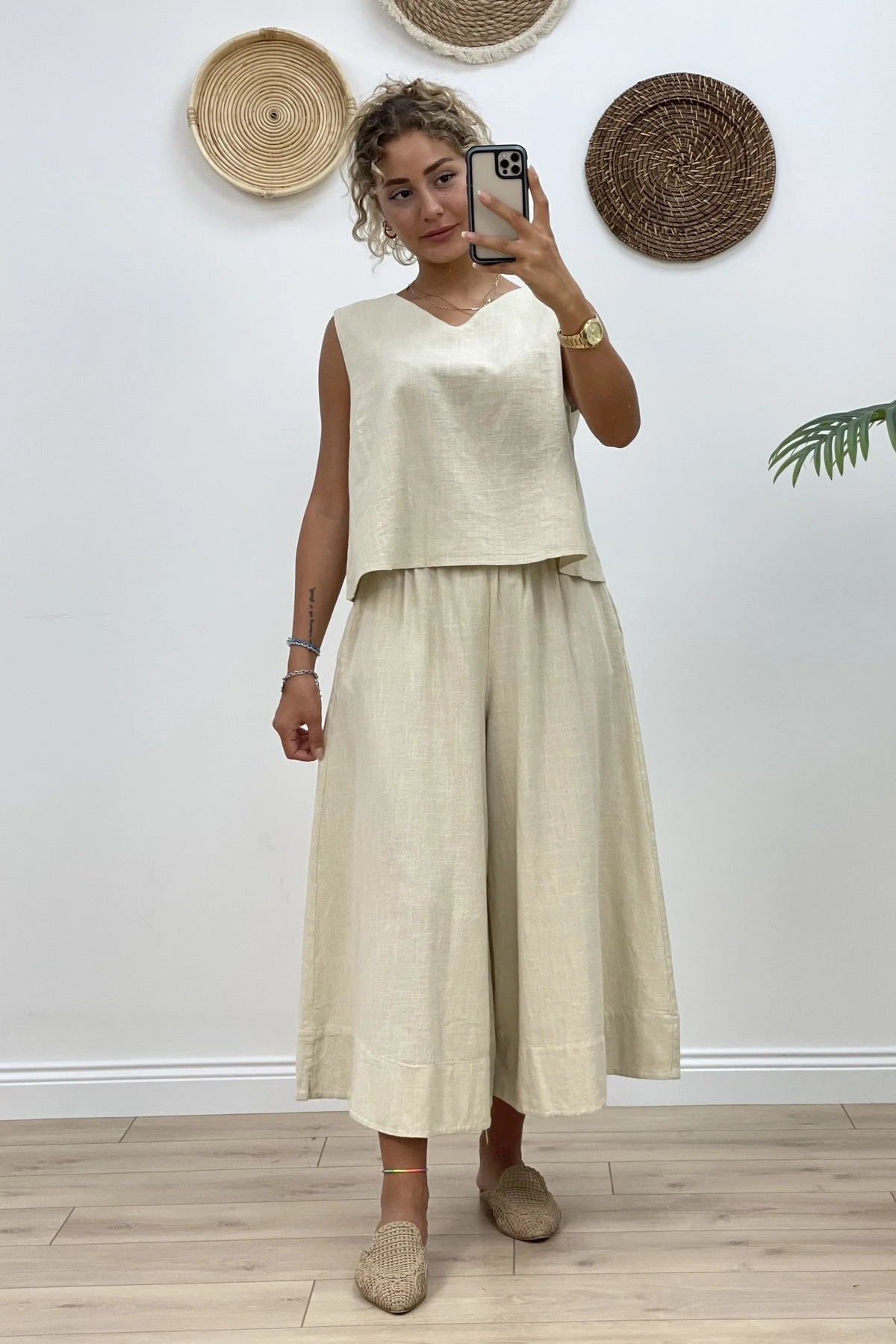 SIFIR KOL ENSE PENCERE BLUZ+ BOL PAÇA PANTOLON TAKIM – TAŞ
