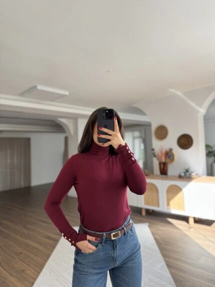 BİSİKLET YAKA KABARTMALI YÜN KARIŞIM KAZAK – FÜME MELANJ