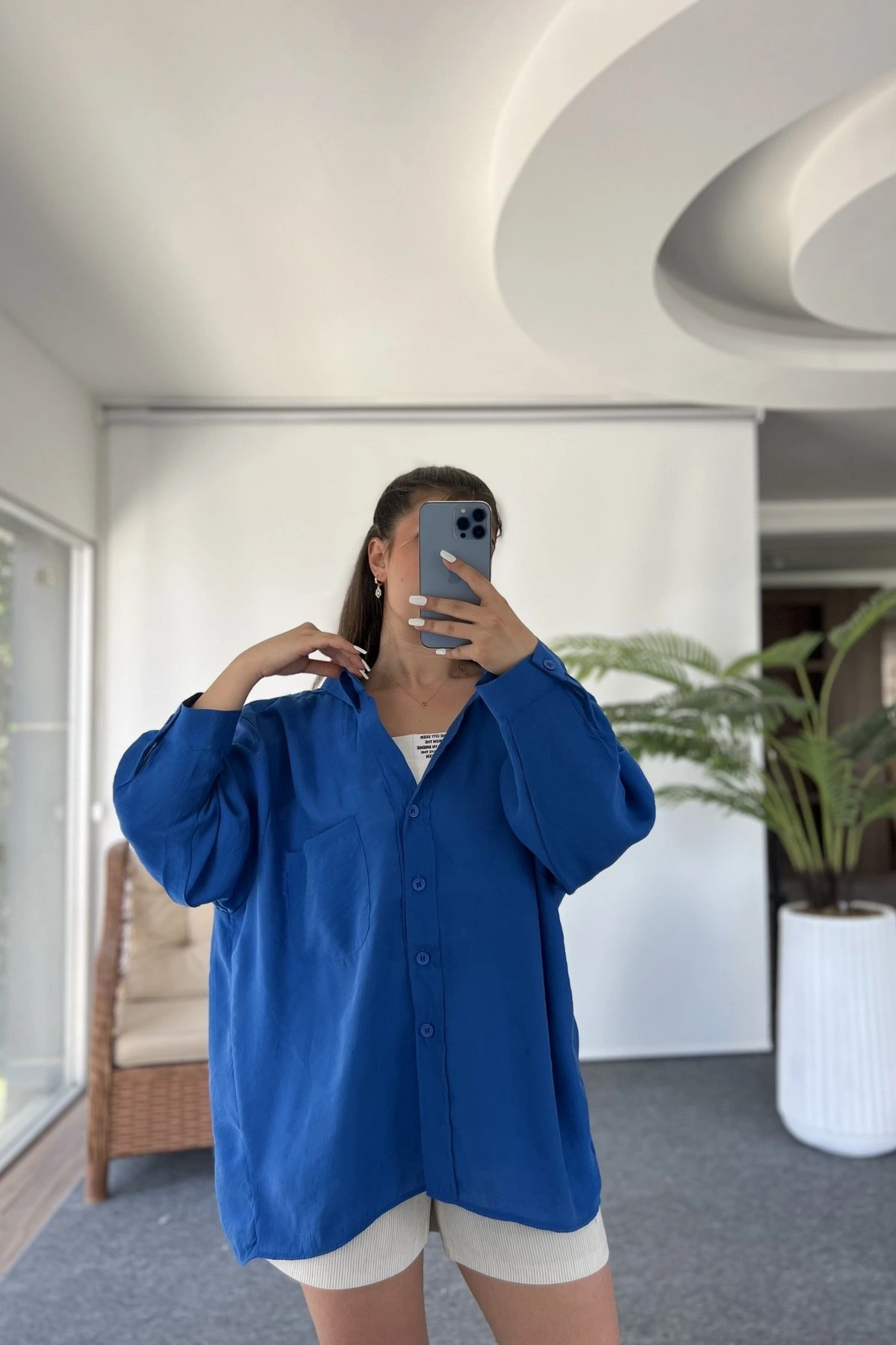 ARKA A PİLE DÜŞÜK OMUZ TEK CEP MODAL GÖMLEK – AÇIK MAVİ