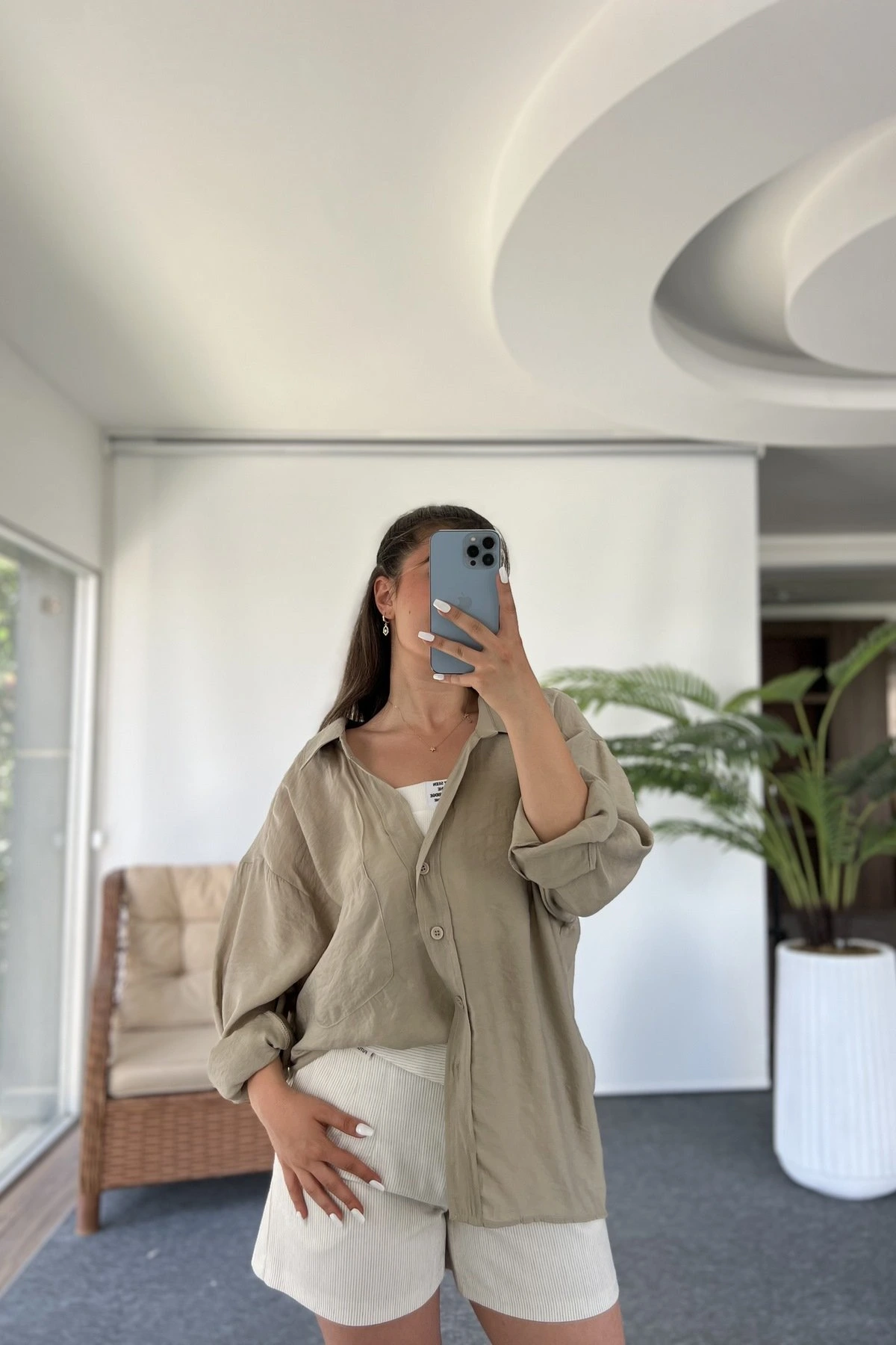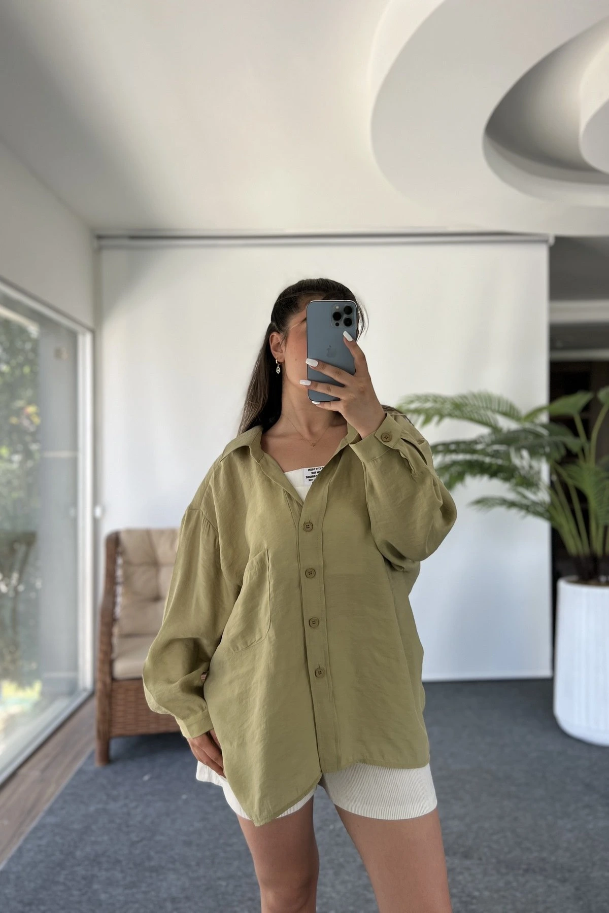 ARKA A PİLE DÜŞÜK OMUZ TEK CEP MODAL GÖMLEK – OLİVE