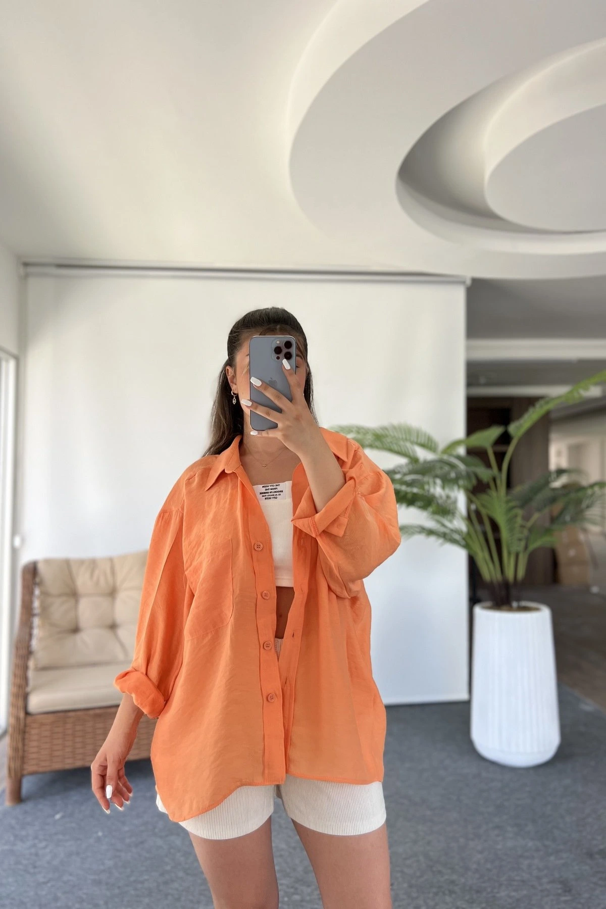 ARKA A PİLE DÜŞÜK OMUZ TEK CEP MODAL GÖMLEK – ORANGE