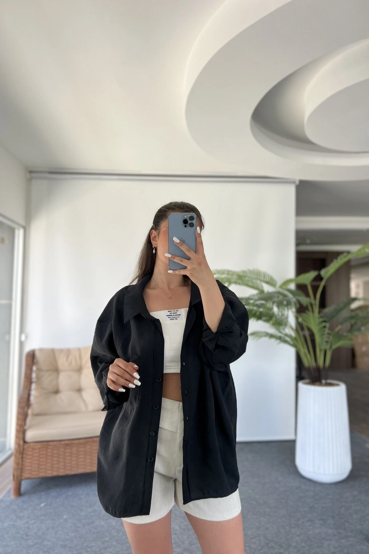 ARKA A PİLE DÜŞÜK OMUZ TEK CEP MODAL GÖMLEK – SİYAH