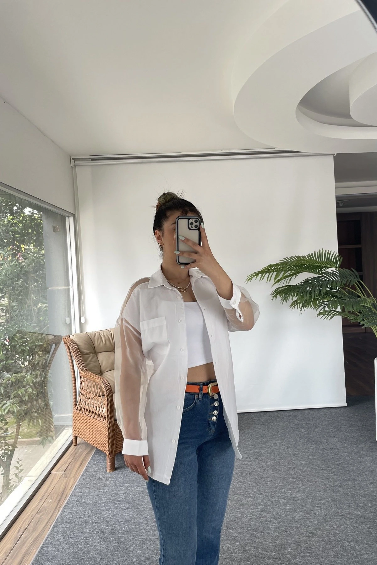 ARKA TÜL İÇ BRİT DETAY PAMUK GÖMLEK – BEYAZ
