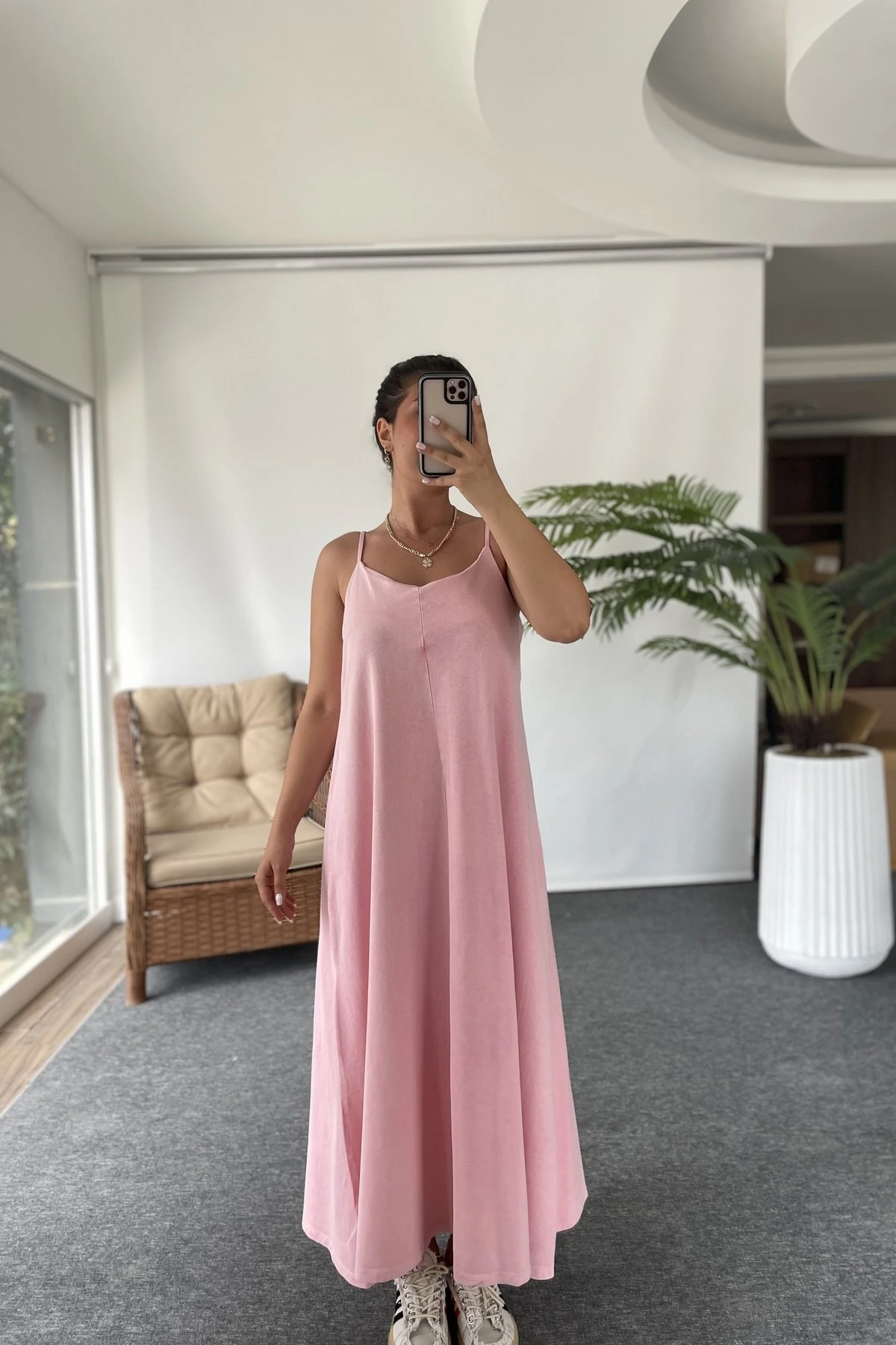 ASKI AYARLAMALI PAMUK LİKRA YIKAMALI SALAŞ ELBİSE – PEMBE