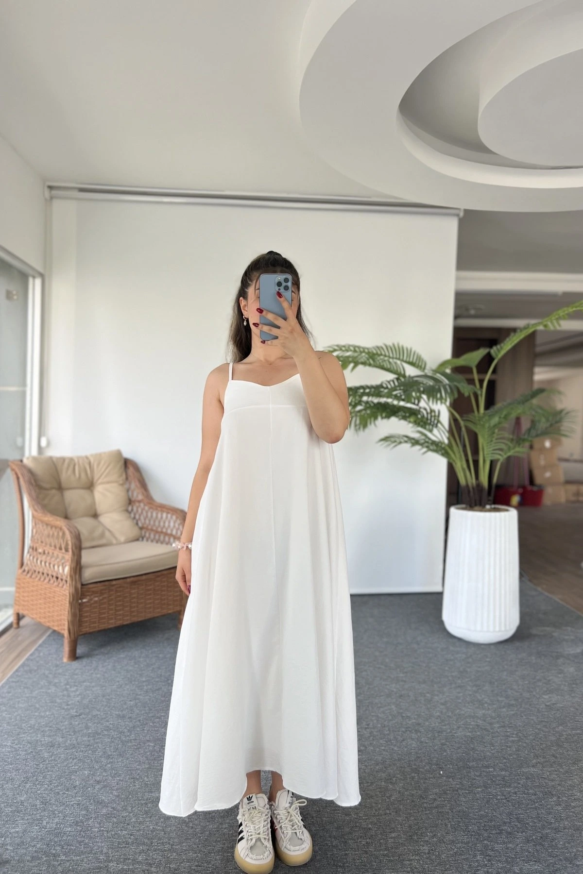 ASKI AYARLI ÖN VA SALAŞ ELBİSE – BEYAZ