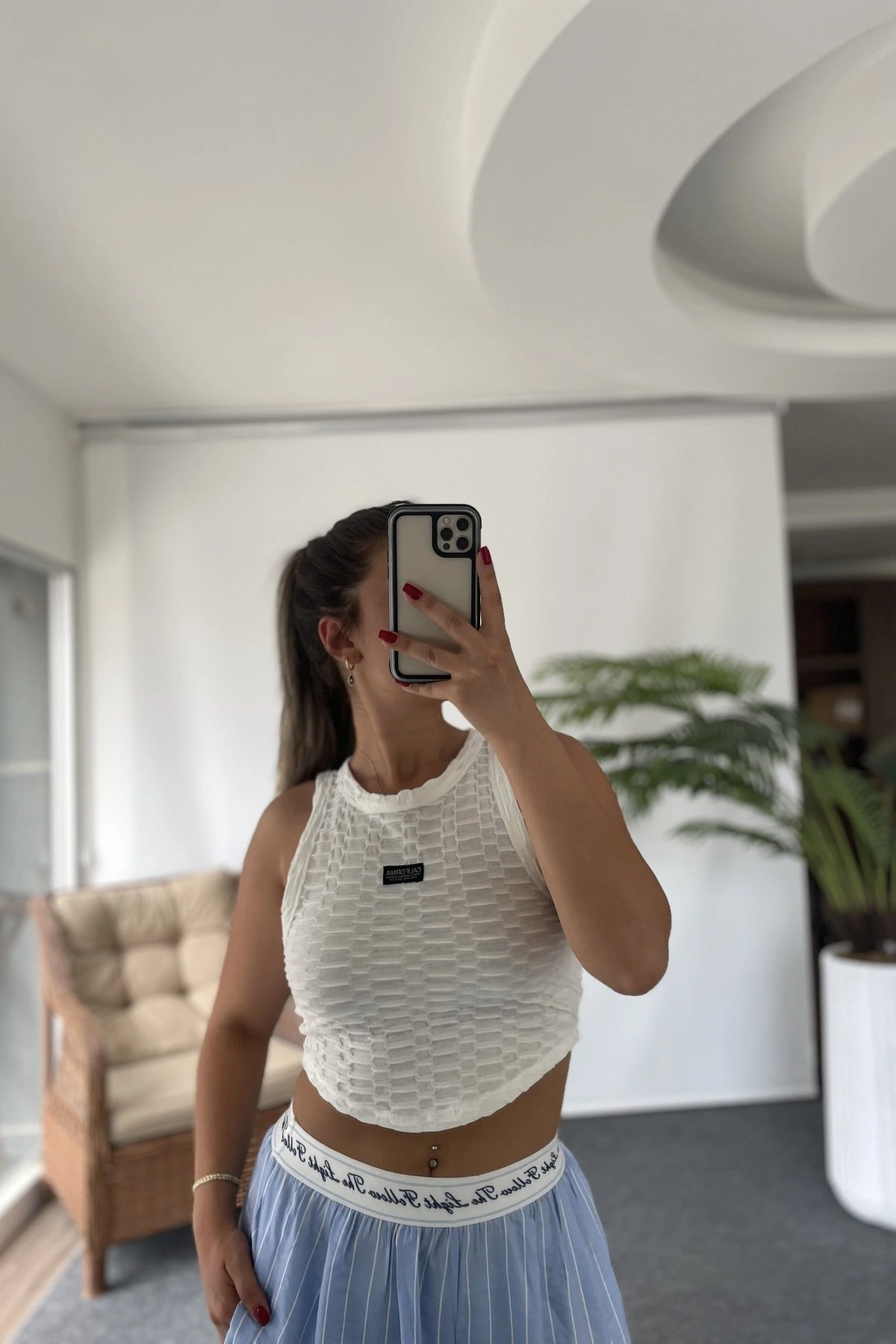 ÇİZGİ DOKU PAMUK CROP ATLET – EKRU