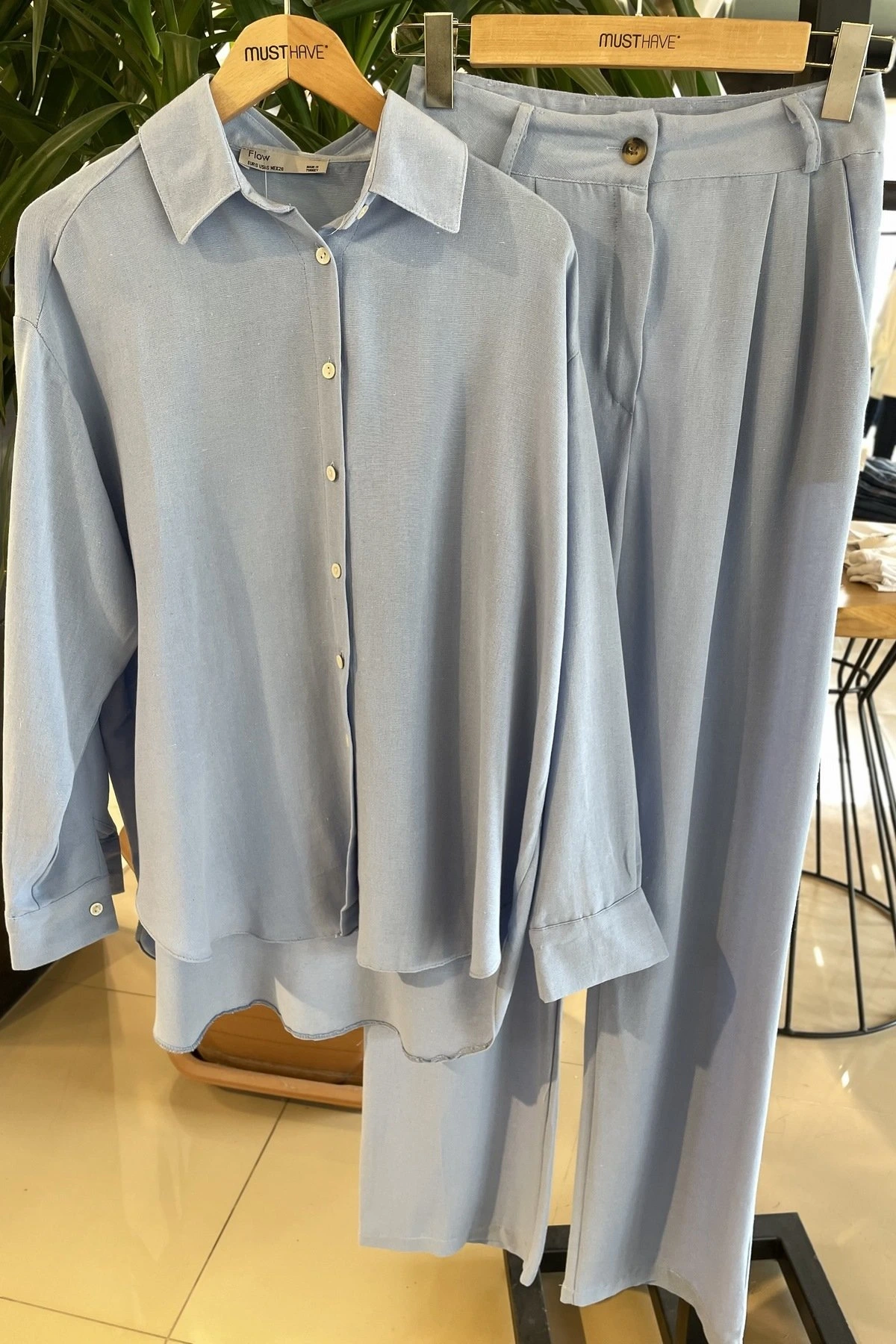 GÖMLEK PANTOLON PAMUK KETEN TAKIM – MAVİ