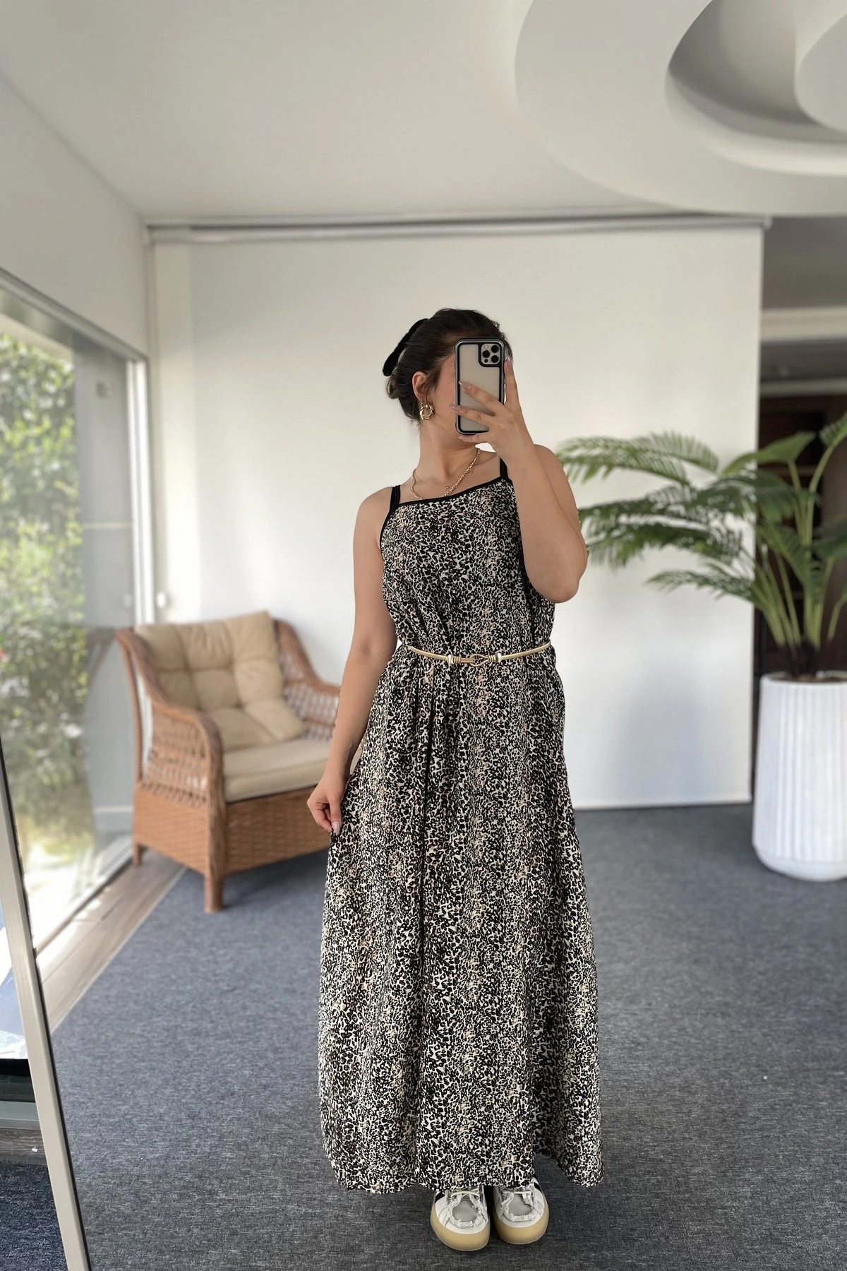 LEOPAR ASKI AYARLAMALI PAMUK KARIŞIM ELBİSE – LEOPAR