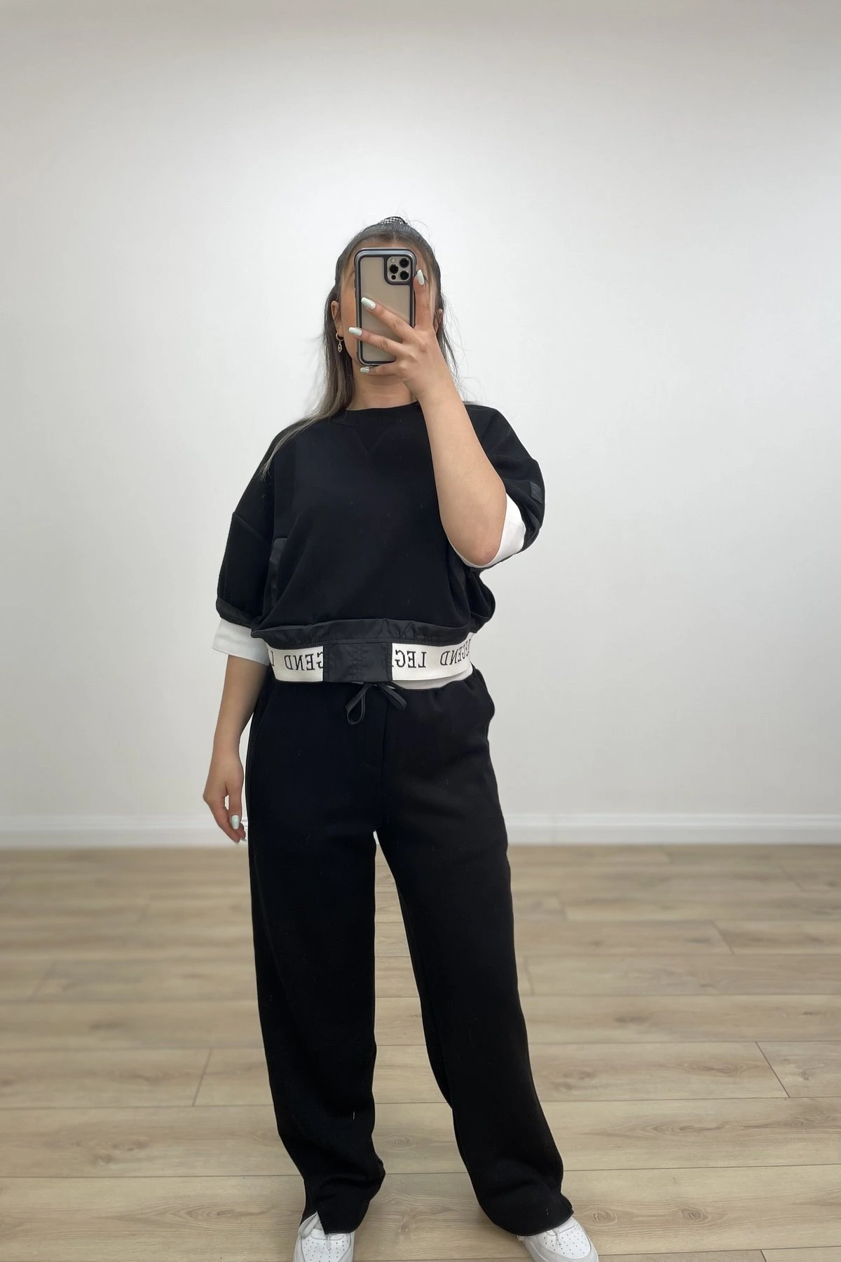 PARAŞÜT DETAY CROP BEL LASTİK MODAL TAKIM – SİYAH
