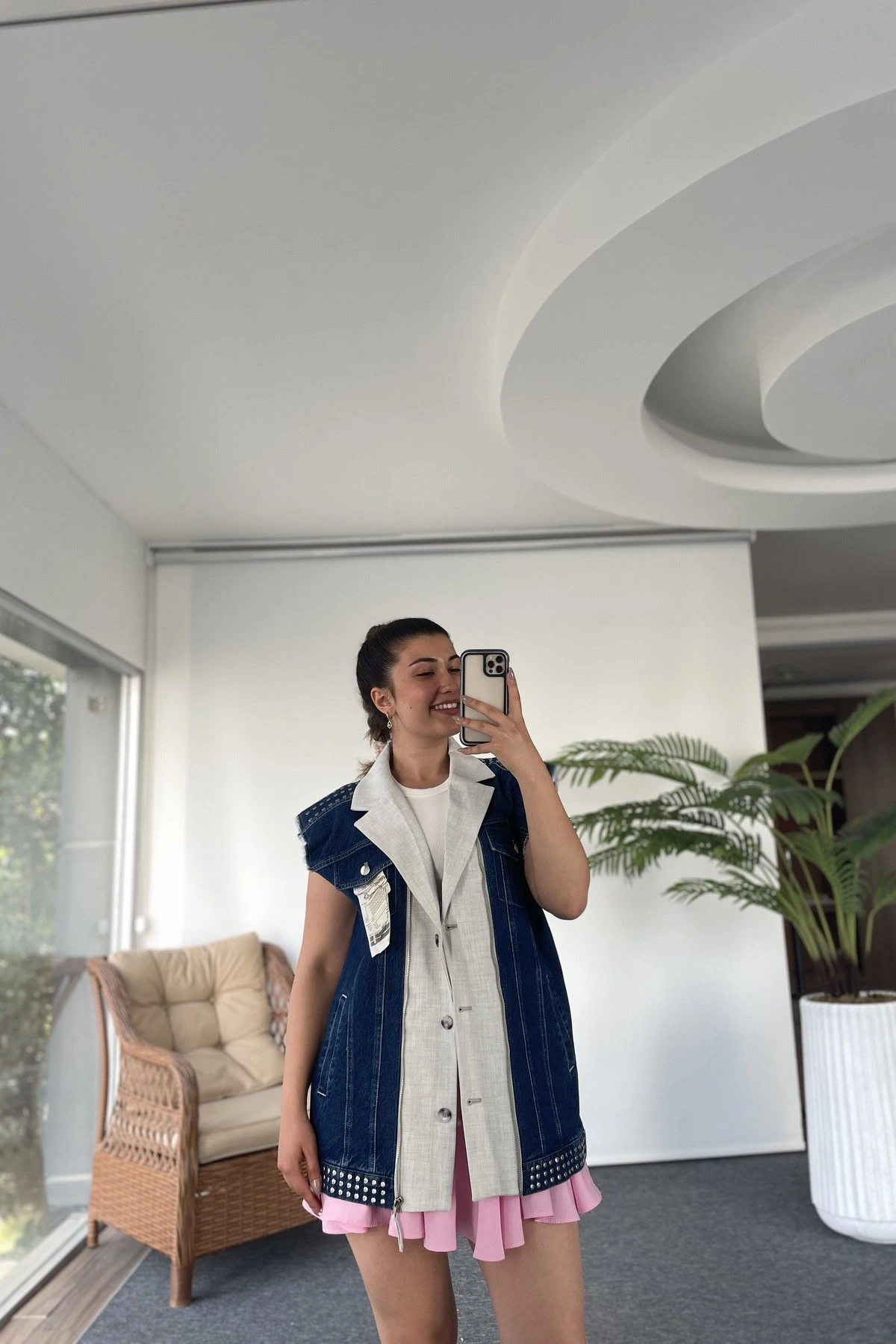 PARÇALI KUMAŞ AKSESUAR DETAY JEAN YELEK – A.GRİ