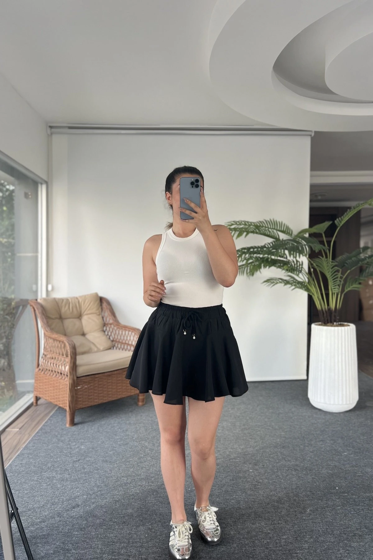 ŞORTLU KLOŞ MİNİ TİRİL ETEK – SİYAH
