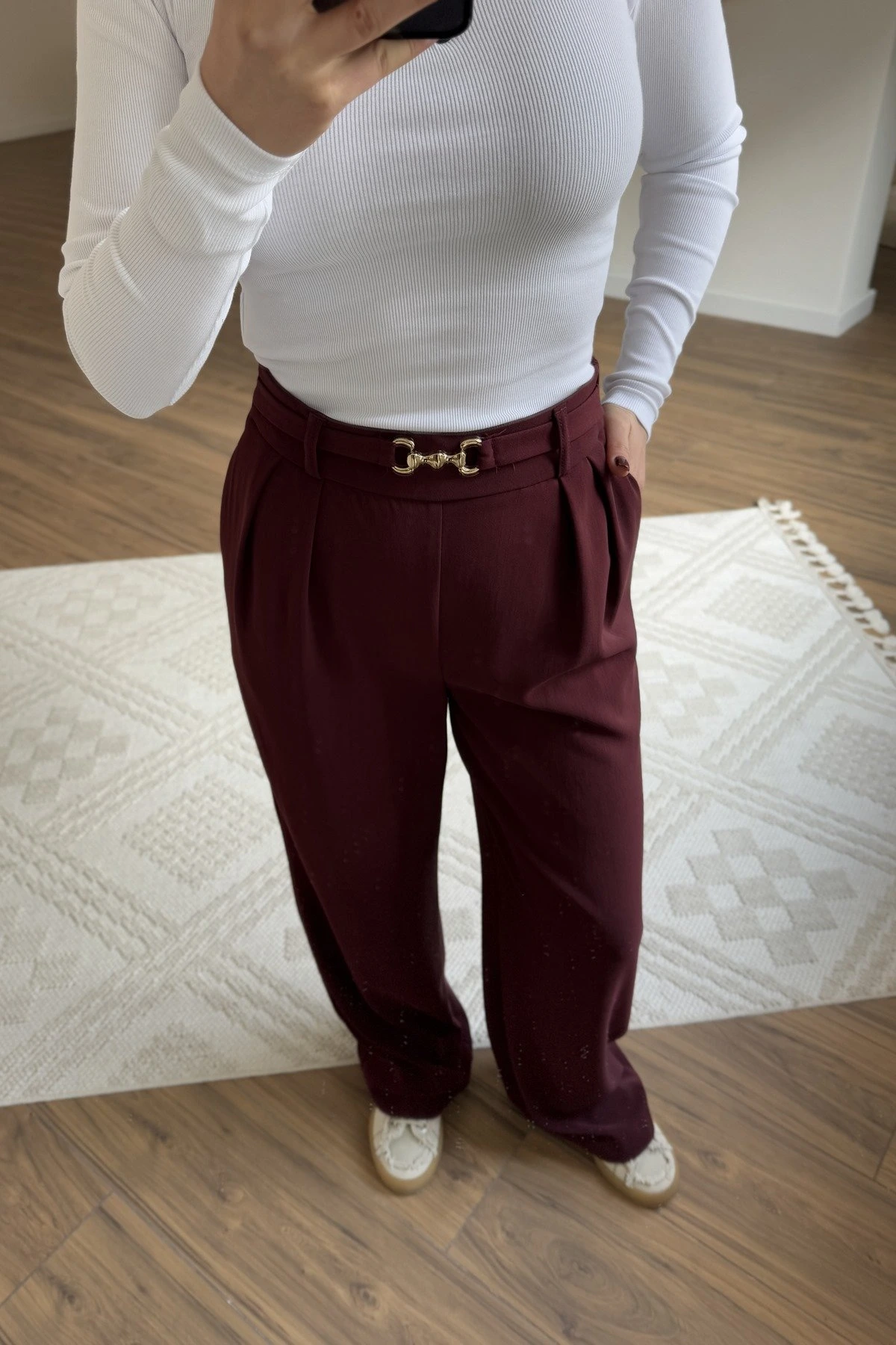 ARKA BEL LASTİK ÖN BRİT AKSESUAR KEMER BOL PAÇA TİRİL PANTOLON – BORDO