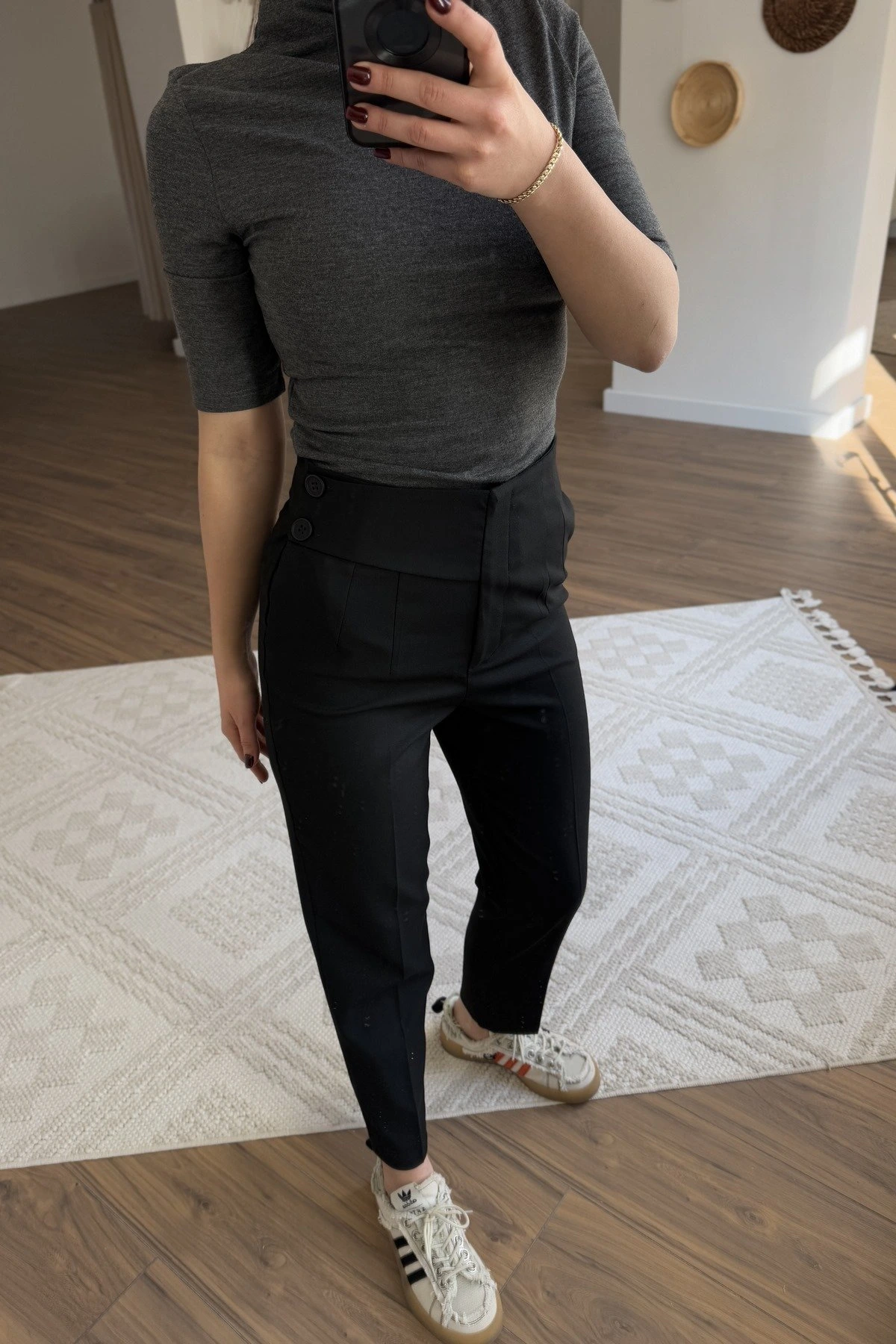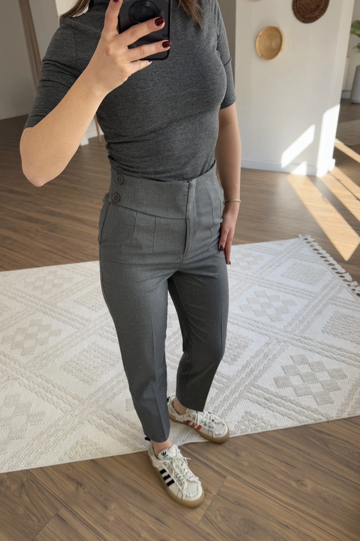 ARKA BEL V YAN DÜĞME DETAY VİSKON HAVUÇ PANTOLON – ANTRASİT