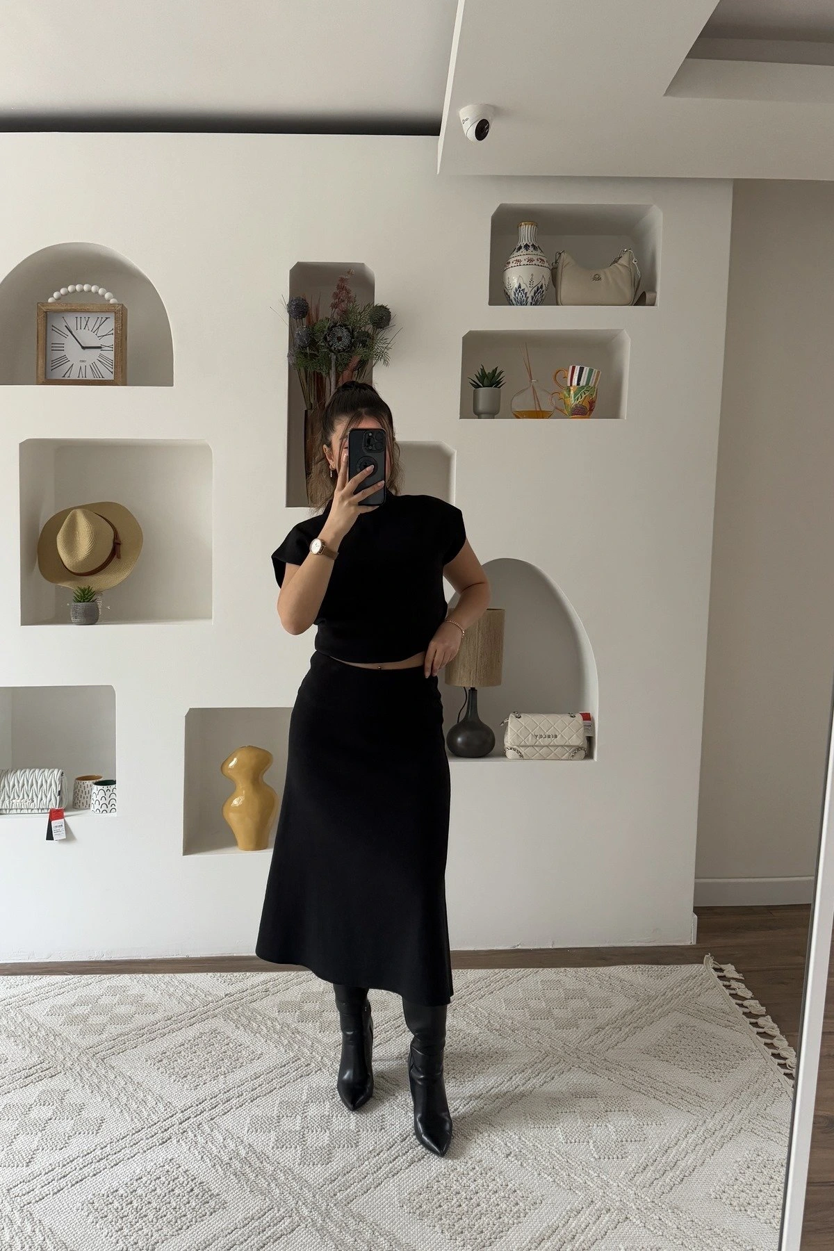 GENİŞ BEL SELANİK ÖRGÜ MİDİ PAMUK ETEK – SİYAH