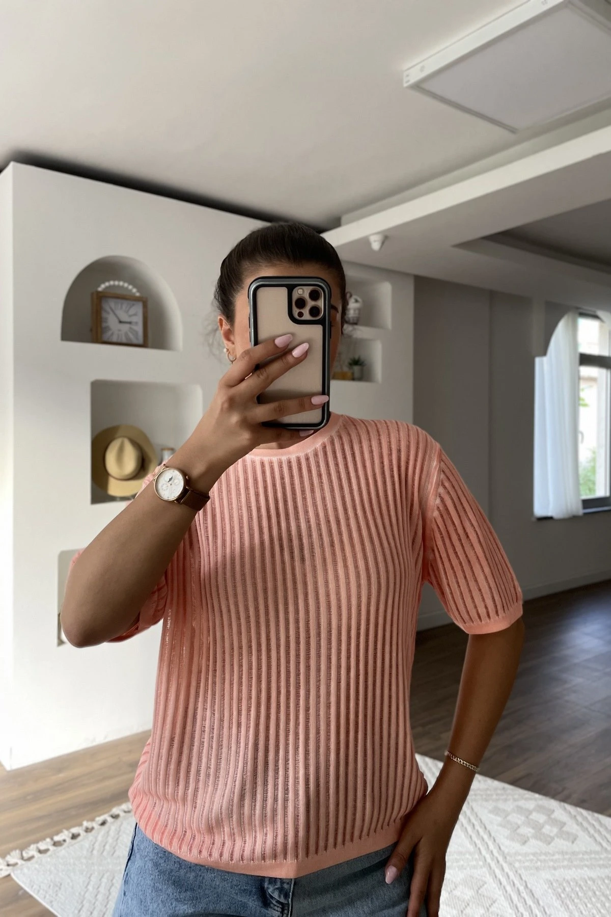 BİSİKLET YAKA DOKUMA PENYE PAMUK TİŞÖRT – ŞEFTALİ