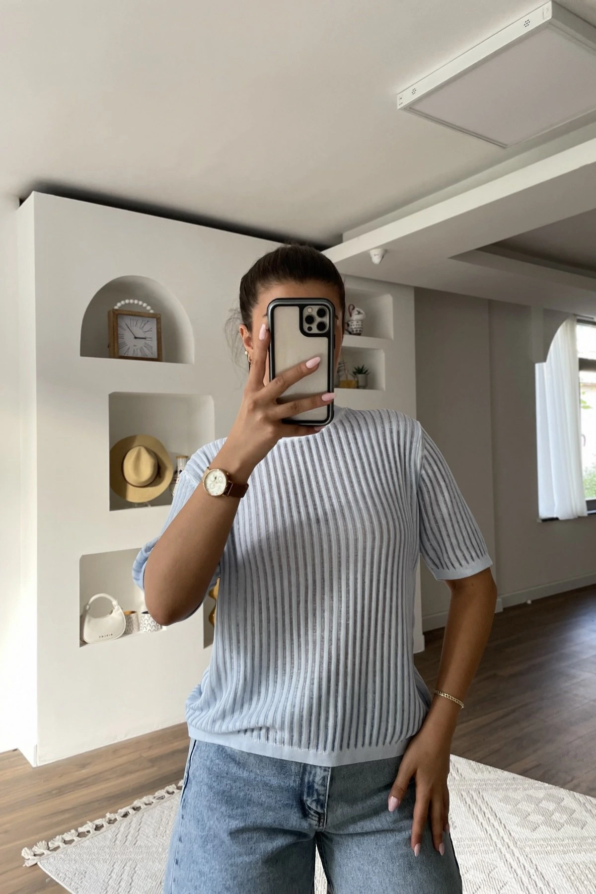 BİSİKLET YAKA AJURLU VİSKON BLUZ – BEBE MAVİ