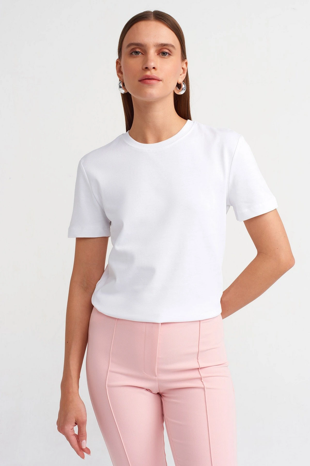 BİSİKLET YAKA DOKUMA PENYE PAMUK TİŞÖRT – BEYAZ