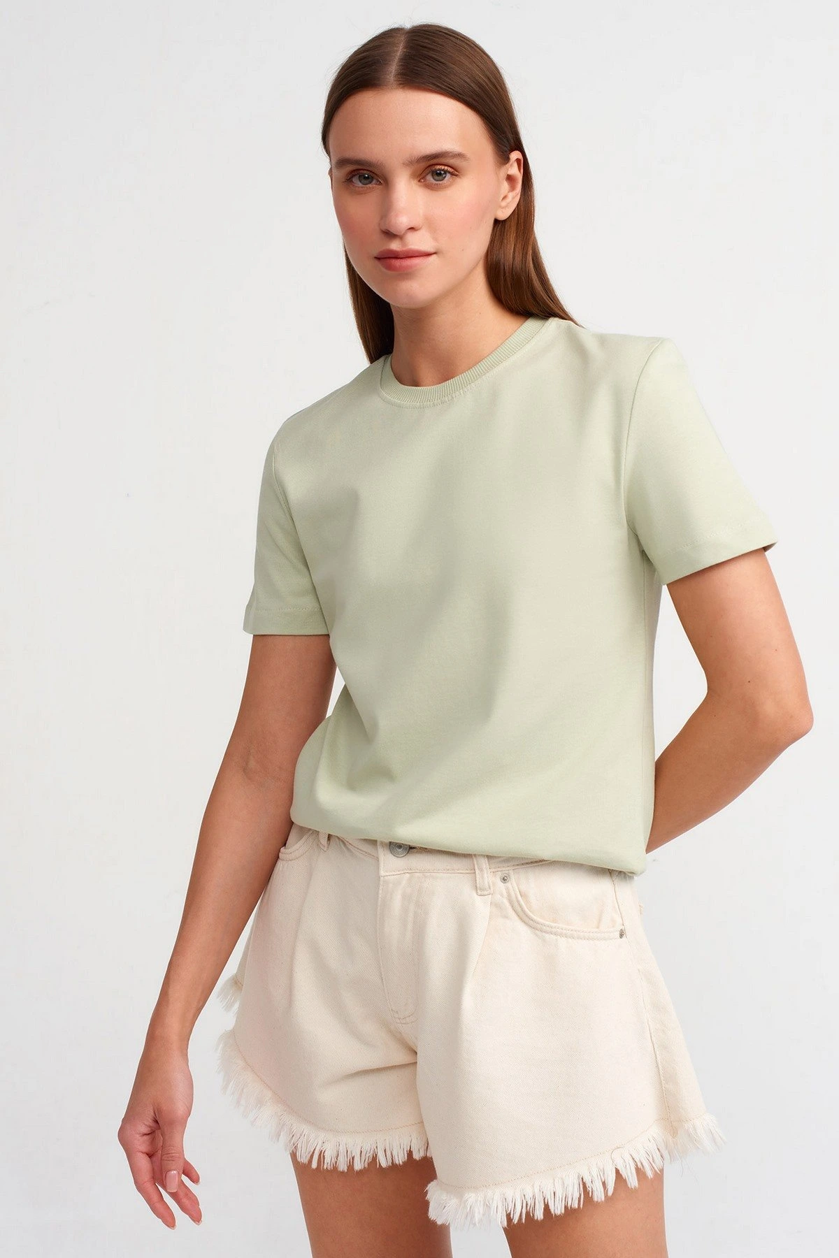 BİSİKLET YAKA DOKUMA PENYE PAMUK TİŞÖRT – MİNT YEŞİLİ